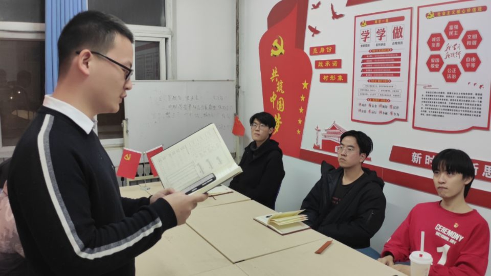 为深入学习十九届六中全会精神,感悟党百年来取得的伟大成就,学习党成功的历史经验,本科生第三党支部11月24日晚上在西区十号楼信息学院党员活动室开展“学习十九届六中全会精神”政治理论学习。由预备党员王晓博同志领学,支部党员韩家齐、张云鹏同志,支部发展对象张云皓、李永飞同志,支部积极分子刘同海、邓星宇参加学习活动。