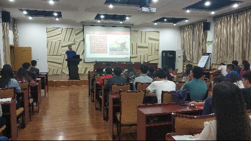 杨鹏老师从党代会的基本知识、自身的直观感受、十九大简介和报告的六个“新”四个方面展开讲述。课程伊始,杨老师以党代会的四个基本问题向学生发问,从我党的现状和今昔对比引起大家的思考,并以自身的参会经验和国外访学经历,讲述祖国的变化和党中央的付出有了更深切的体会。杨老师以演示结合视频的形式,对十九大报告进行讲授。通过国内外对比和数字化现代生活科技的例证,以国际友人的话语侧面展示国家的繁荣发展,深刻揭示出党和国家在精准扶贫、脱贫攻坚工作中做出的努力和取得的成就。在讲授过程中,杨鹏老师诙谐、幽默的语言给学生们留下了深刻的印象,寓教于乐的教学方式更是为课堂制造了轻松活跃的氛围,同学们在愉快的课堂中对十九大报告有了更为深刻的体会,对国家的现状也有了更深刻的理解。