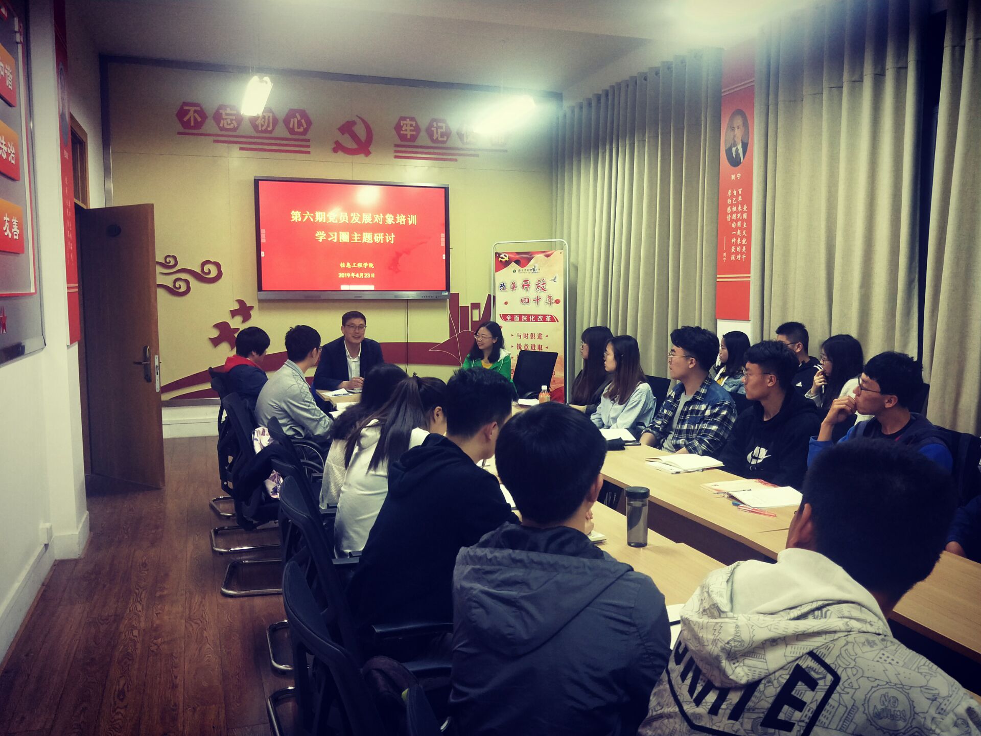 为加大对党员发展对象的思想教育力度,增强党员身份认知,4月24日晚,学院党委组织开展以“如何做一名合格共产党员”为主题的学习研讨,党务秘书程玉锋老师、学院第六期党员发展对象28名成员参加,辅导员陈可老师主持。