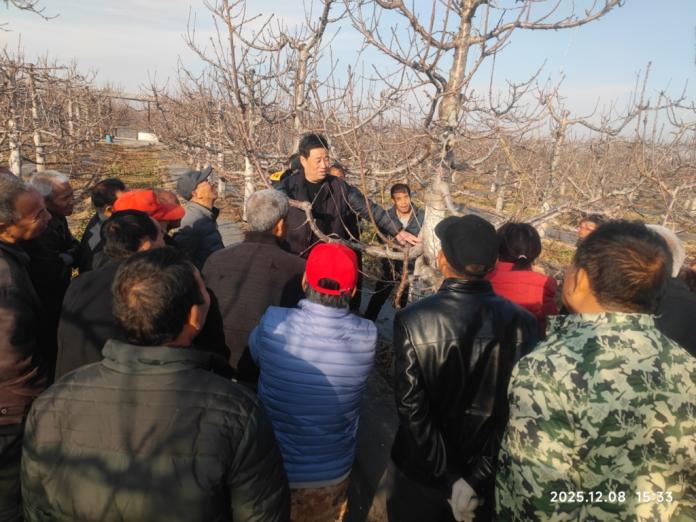 下午,团队兵分两路深入田间开展“手把手”培训。一路前往方寨村,樱桃专家吕平会为四十余位种植户讲解樱桃树修剪关键技术,并走进樱桃园现场示范剪枝方法,解答农户疑问,互动热烈。另一路赴沟北村草莓种植区,草莓专家刘占杰为农户讲解选种育种、温湿度管理等要点,随后深入大棚查看苗情,针对具体问题现场诊断,给出实用解决方案,受到农户广泛好评。两场培训累计培训了农户72人次。