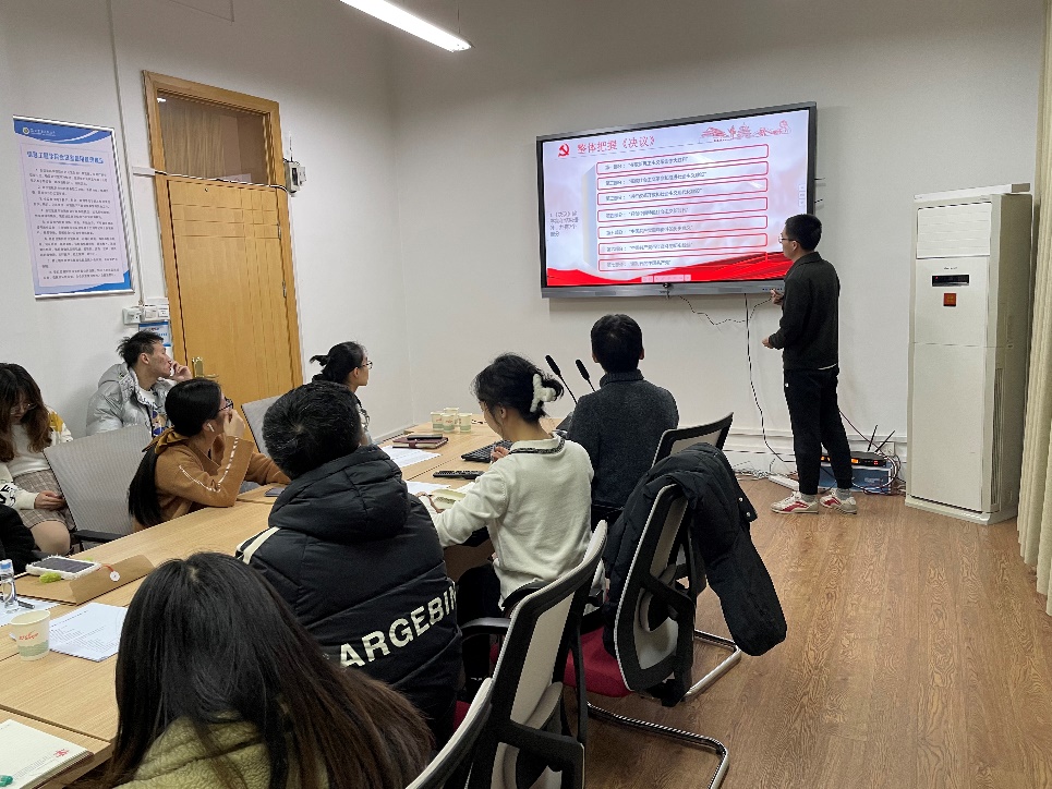 2021年11月8日至11日,中国共产党的第十九届中央委员会第六次全体会议在北京召开。全会全面总结了党的百年奋斗重大成就和历史经验,对团结带领全国各族人民夺取新时代中国特色社会主义新的伟大胜利,具有重要的现实意义。我院研究生第一党支部于11月29日晚组织全体党员认真学习全会精神,结合实际谈心得。