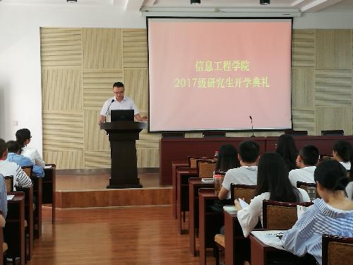 院长蔡骋发表了热情洋溢的讲话,他首先代表学院党政领导和全体师生员工向2017级研究生新生表示衷心的祝贺和热烈的欢迎,接着又为全体新生做了精彩的迎新致辞,从学校资源、导师资源、社会资源和个人成长四个方面着手,希望研究生充分利用学校的教育平台,做好规划、目标明确、严谨诚信、实事求是、开拓创新、不断进步。