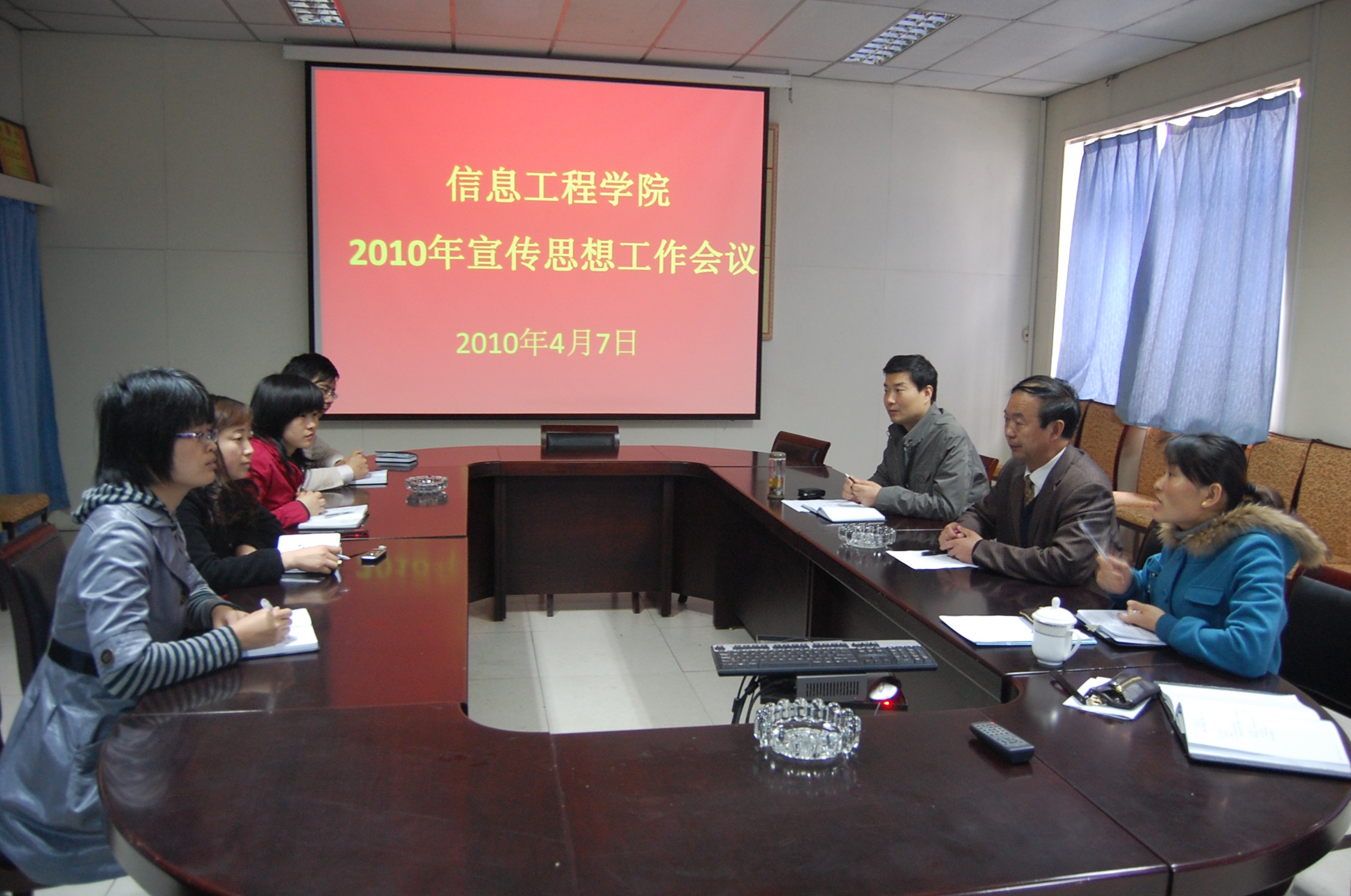 为了落实学校2010年宣传思想工作会议精神,我院4月7日上午在学院一层会议室召开2010年宣传思想工作会议,传达学校3月24日宣传思想工作会议精神,安排部署2010年学院的宣传思想工作。院领导樊世明书记、何卫军副书记、综合办公室全体工作人员和教工通讯员参加了本次会议。樊世明书记就学院的宣传思想工作做了全面的部署和安排,何卫军副书记主持会议。