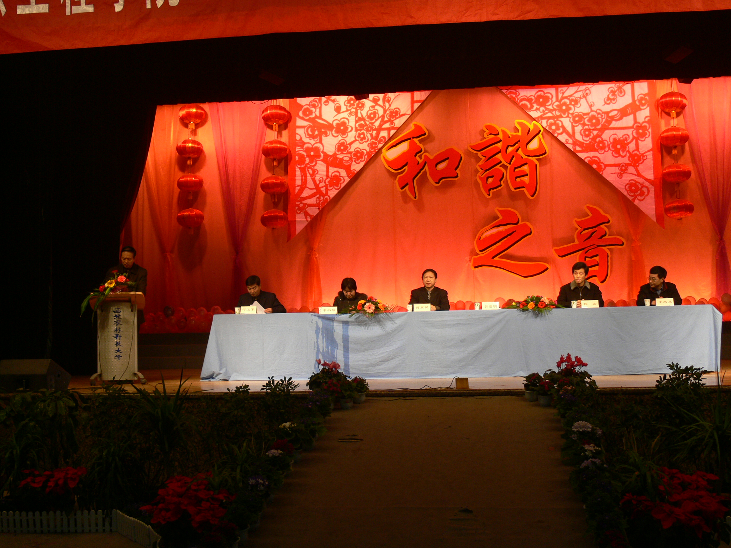 12月23日晚,信息工程学院2007年度表彰大会及师生元旦联欢晚会在绣山活动中心隆重举行。出席本次晚会的领导有信息工程学院院长何东健教授、党委书记樊世明、副书记何卫军、副院长韩宏、副院长李书琴、副院长王木昌。全院师生共1100余人参加了此次表彰大会暨师生联欢晚会。应邀出席的嘉宾有植物保护学院党委书记吕振武、学生处副处长王文博、校团委副书记江红梅等。
