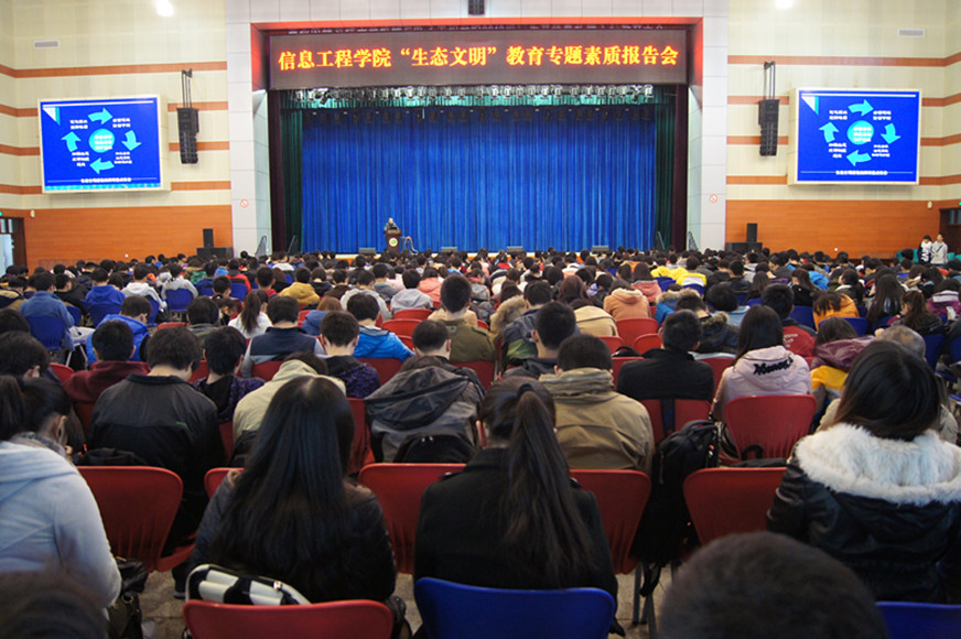 11月26日下午,我院邀请校党委常委、常务副校长赵忠教授在北校区绣山活动中心大厅为信息师生做了“生态文明与森林文化”专题报告。信息学院院长李书琴教授、信息学院党委书记宋西德教授以及全院师生800余人聆听了报告。学院党委书记宋西德主持报告会。