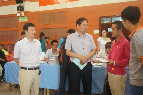 当天,校党委书记梁桂在马建华、吕卫东、赵曼等陪同下前往新生接待现场检查指导工作,对我院入学接待服务人员表示慰问和感谢,对我院入学接待工作表示满意和赞赏。我院党委书记宋西德、党委副书记何卫军也亲临现场检查指导工作,要求所有工作人员以高度的责任感和饱满的工作热情认真做好迎新工作。