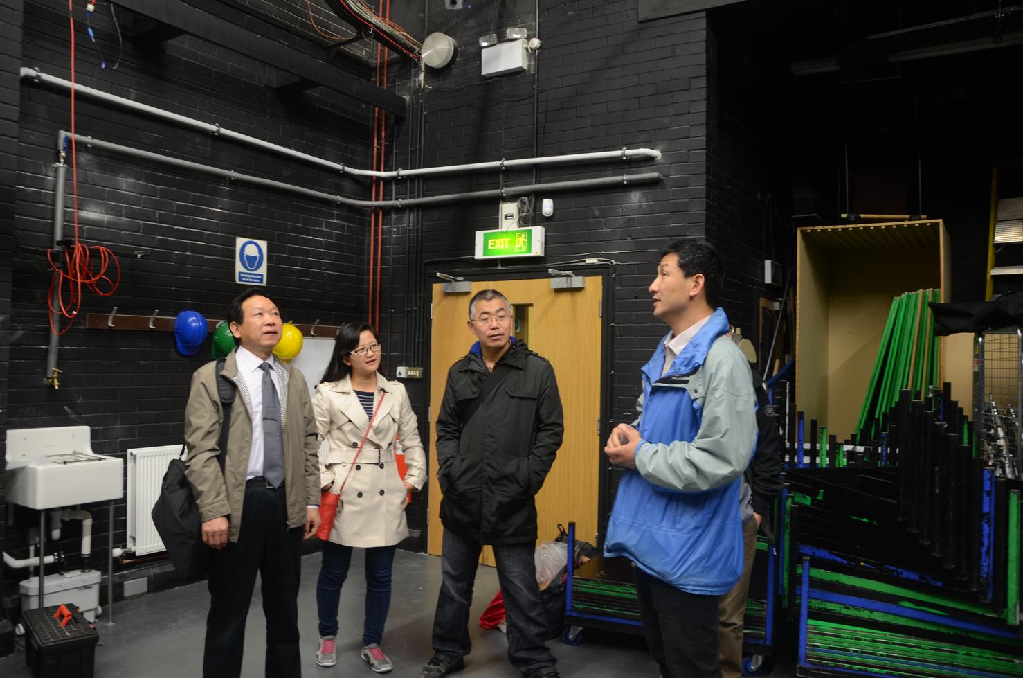 团队成员参观了英国国家计算机动画中心的动作捕捉实验室,该实验室捕捉设备能实时获取人与动物的运动骨骼数据,且能在室外场景下有效采集动作数据。并参观了动画中心搭建的可媲美BBC水准的专业摄影棚与录音室,高水平的教学条件,为该校媒体学院和动画专业学生实习与培训提供重要的支撑作用。