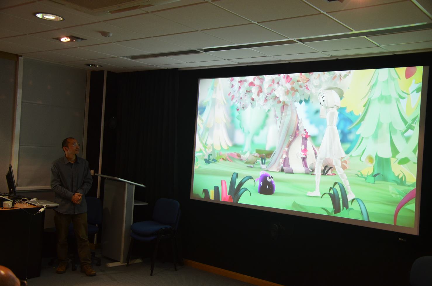 伯恩茅斯大学常健副教授代表英方研究团队介绍了传媒学院和国家计算机动画中心在三维建模、计算机动画、院企联合、人才培养等方面的成果。