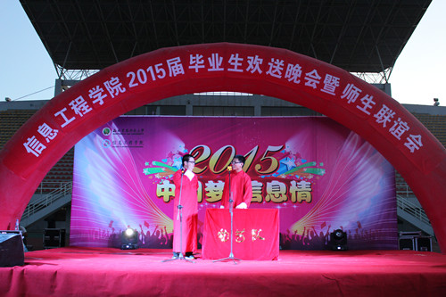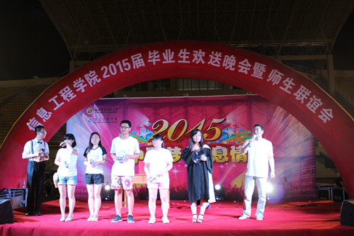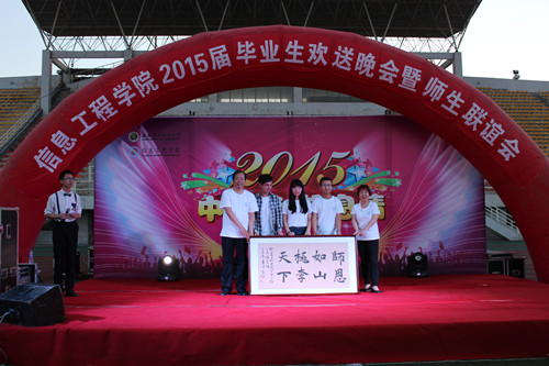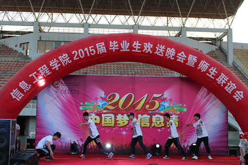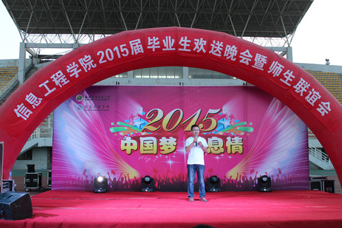 回首四年,青春如火梦想绽放;寄情六月,前程似锦欢乐今宵。信息工程学院2015届毕业生欢送晚会暨师生联谊会于6月25日晚7:30在北校区田径场隆重举行。信息工程学院院长李书琴、党委书记宋西德及学院各年级辅导员、老师亲临晚会现场与百名信息学子共飨视听盛宴。