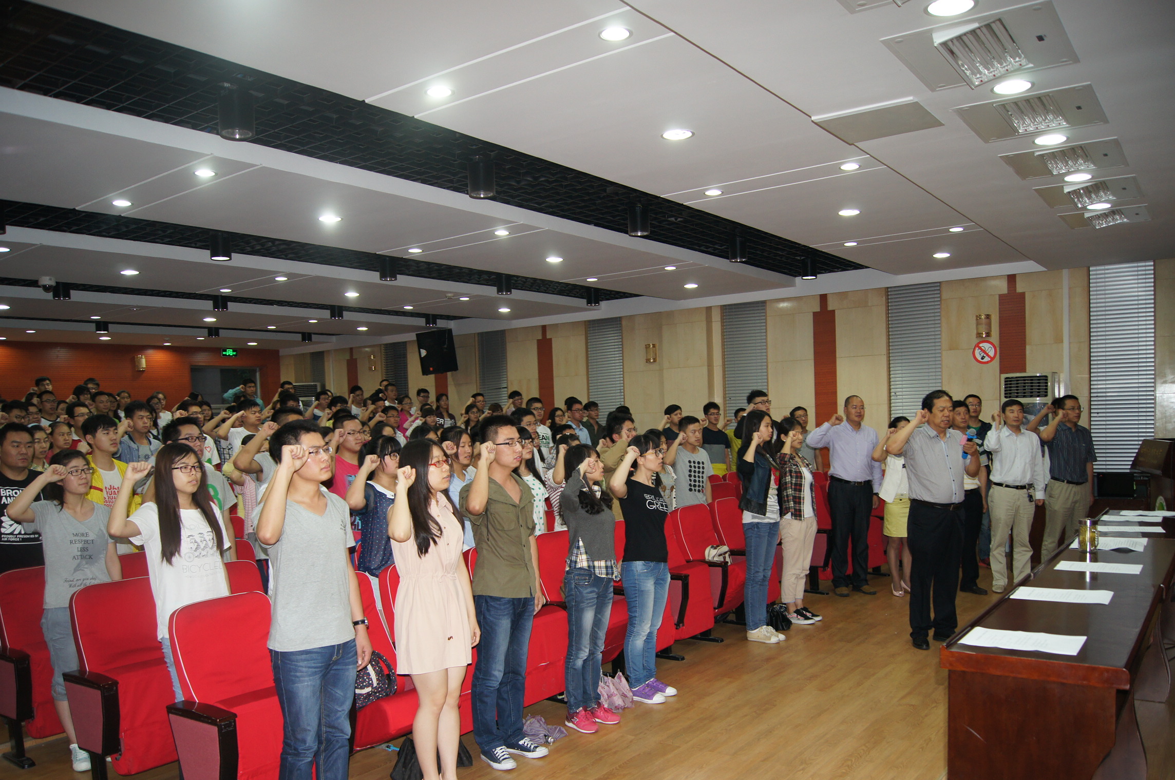 会议在庄严的国歌声中拉来序幕,66名预备党员面向党旗庄严宣誓,140余名正式党员重温了入党誓词。预备党员代表崔鑫宇同学、党员代表蔡骋副教授分表做了表态发言,向全院党员发出了争做优秀党员、争当师生楷模的号召。