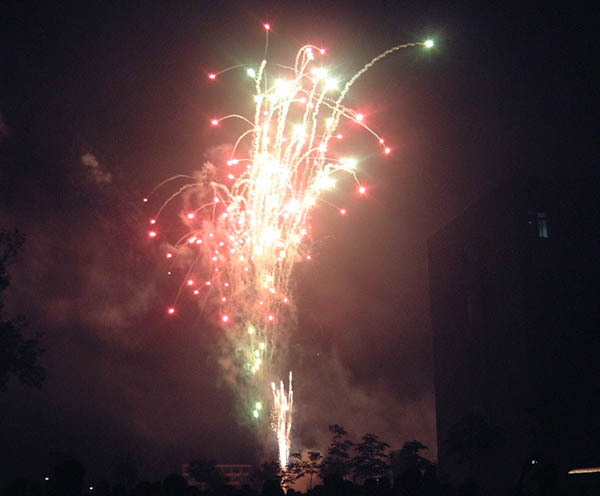 2004年9月11日晚9:30分,学校在体育场燃放礼花。