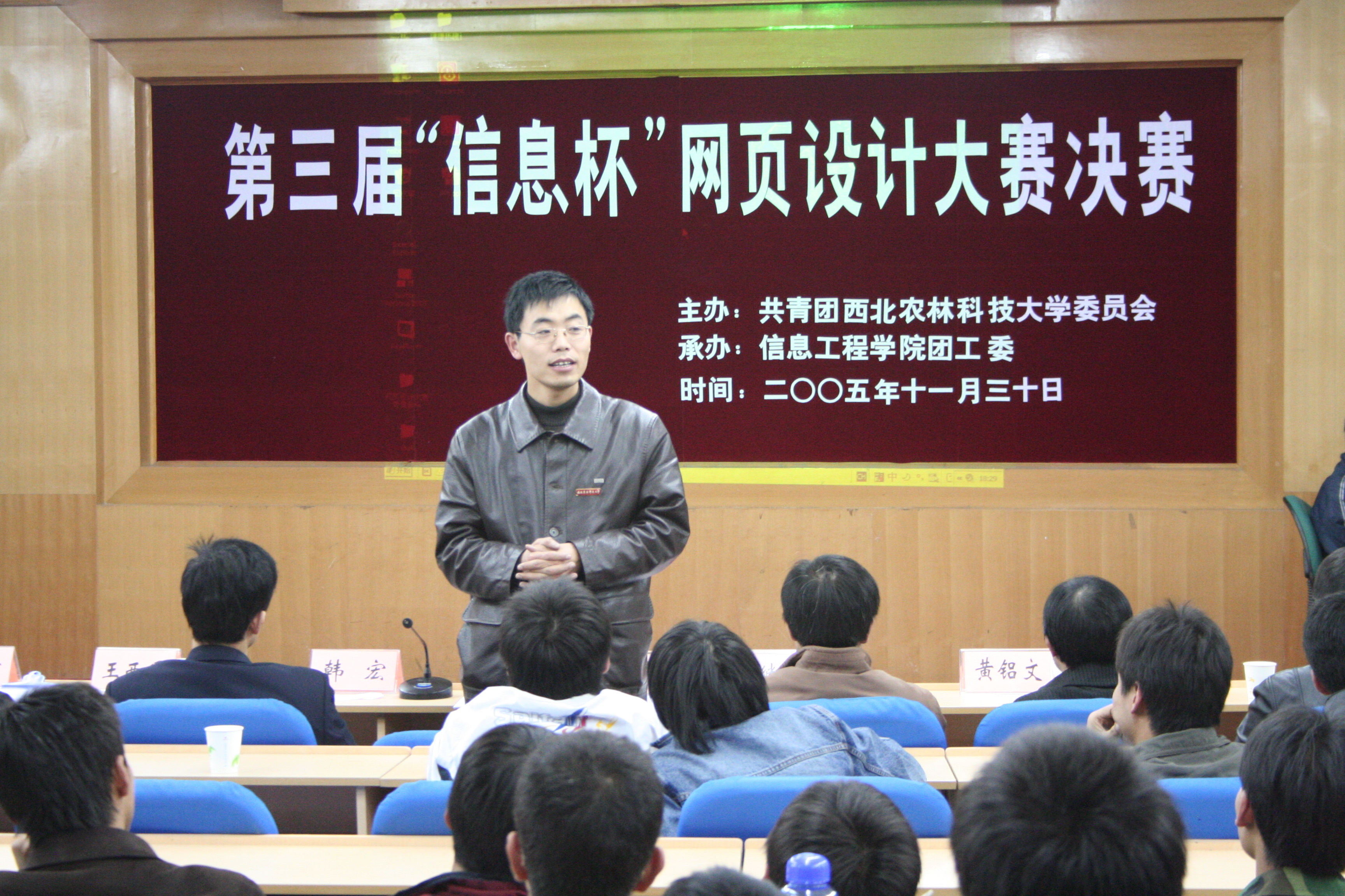 11月30日下午,由信息工程学院团工委承办的校第三届“信息杯”网页设计大赛决赛在北校区七号楼二层报告厅隆重举行。信息工程学院党委书记吕振武老师参加并致辞,校网络中心主任李力教授应邀参加了决赛。