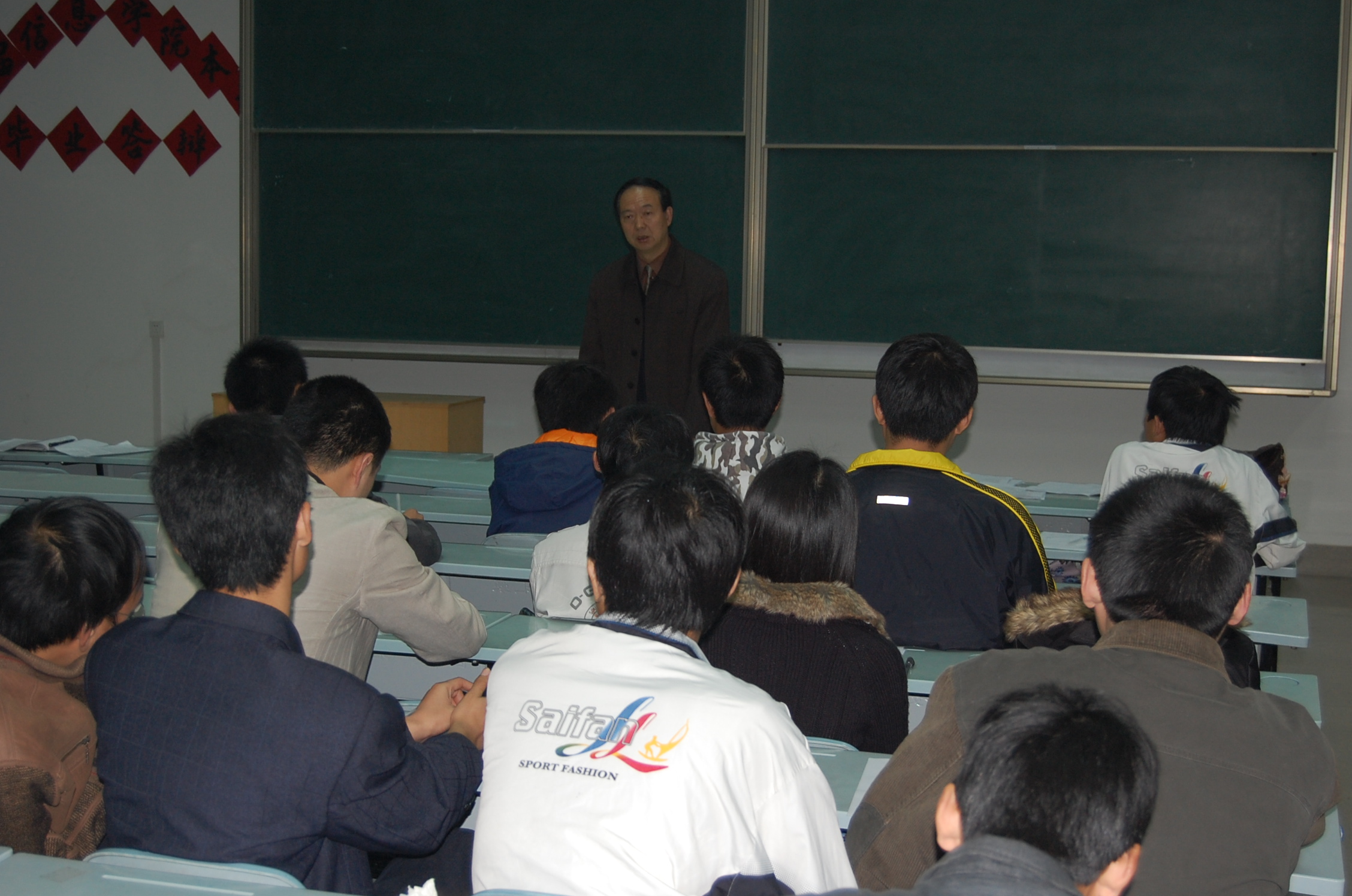 3月12日上午,在信息工程学院M2教室召开了2008届毕业生就业动员大会,鼓励毕业生下基层工作。学院党委书记樊世明同志、党委副书记何卫军同志、辅导员老师及在校毕业生参加了此次大会。
