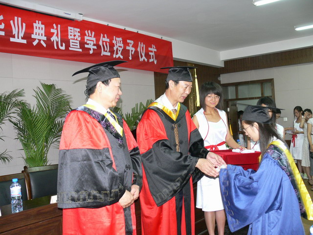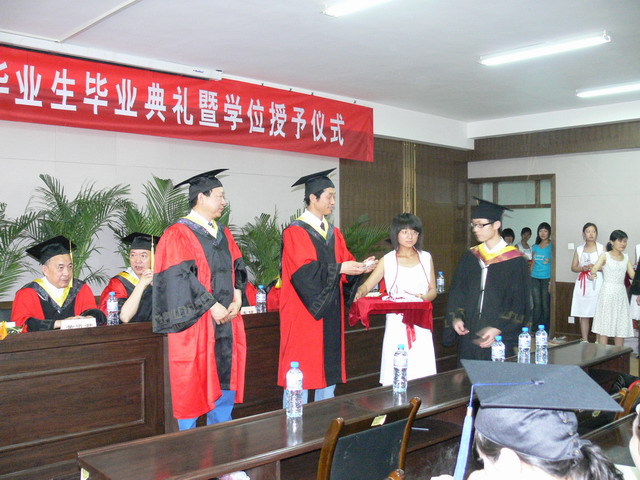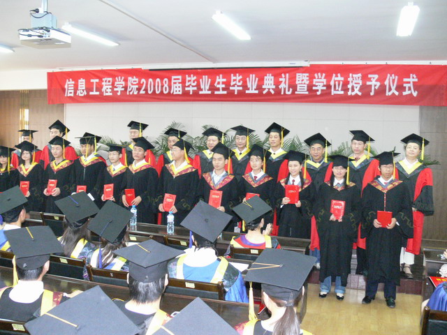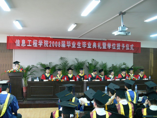 李书琴副院长宣读了学位授予情况,2008届计算机应用技术专业毕业研究生17名,符合硕士学位授予条件,授予工学硕士学位;本科毕业生人数200人符合毕业条件,准予毕业,其中计算机科学与技术专业111人,信息管理与信息系统专业89人。我院计算机科学与技术专业109名同学符合学位授予条件,授予工学学士学位,信息管理与信息系统专业88人符合学位授予条件,授予理学学士学位。