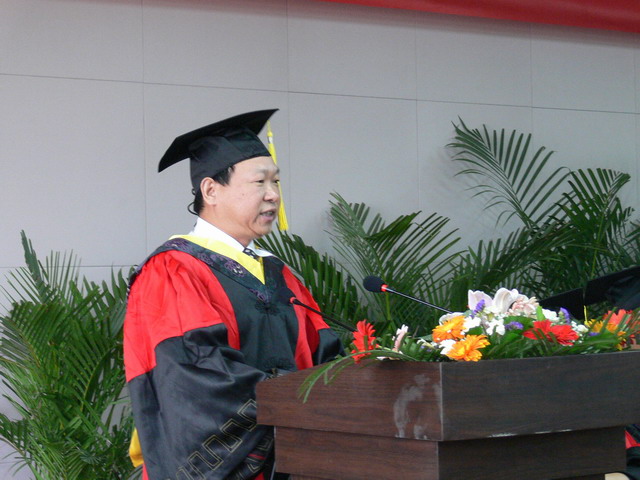 院长何东健教授发表了热情洋溢的致辞。他代表学院向即将走向工作岗位或继续深造的全体毕业生表示诚挚的祝贺。他希望各位毕业生能够迎接挑战、终身学习,锤炼品格、追求卓越,心存感恩、回报社会,在学习、工作上要老老实实做人、勤勤恳恳做事;要脚踏实地的做人、做事,反对浮躁。要有开拓、创新、进取和百折不饶的精神;要正确处理好学习、生活与工作的关系,以健康、饱满的精神状态投入到工作中。