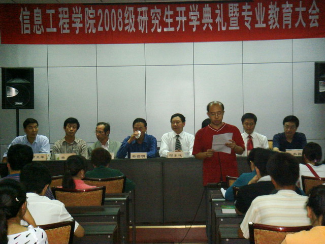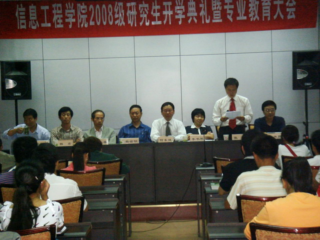 9月8日下午,学院在二楼多功能厅召开“2008级研究生开学典礼暨专业教育大会”,学院领导、研究生导师出席了会议,全体研究生参加了会议,会议由副院长李书琴教授主持。