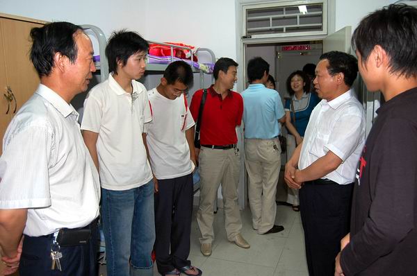 8月28日晚8点,院长何东健、院党委书记樊世明、副书记何卫军、副院长李书琴、副院长韩宏、副院长王木昌一起来到新生宿舍亲切看望2008级新生。