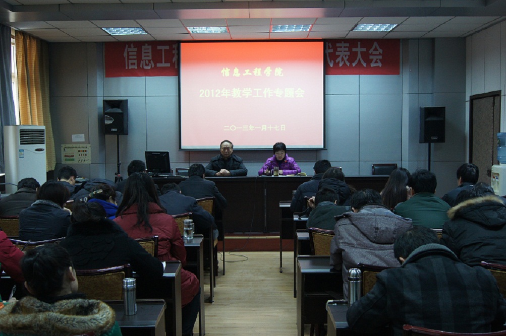 2013年1月17日下午,学院2012年教学工作专题会在学院二层多功能厅召开,会议由院长李书琴教授主持,所有院领导及教职员工参加了会议。