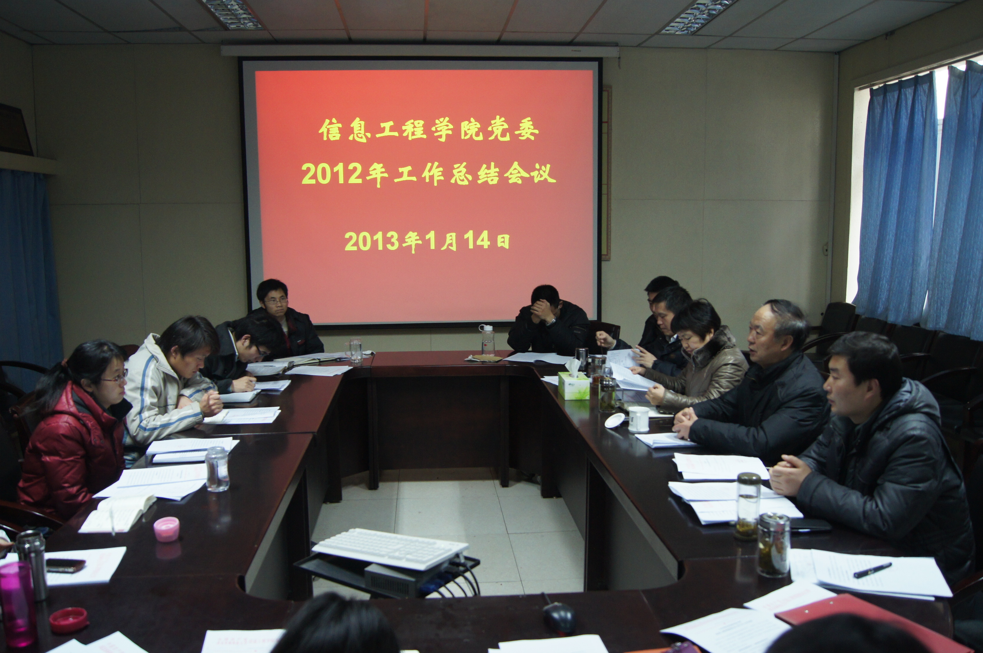 1月14日下午,学院在一层会议室召开了2012年党委工作总结会议。学院领导、党委委员和各党支部书记参加了会议。学院党委副书记何卫军主持了会议。