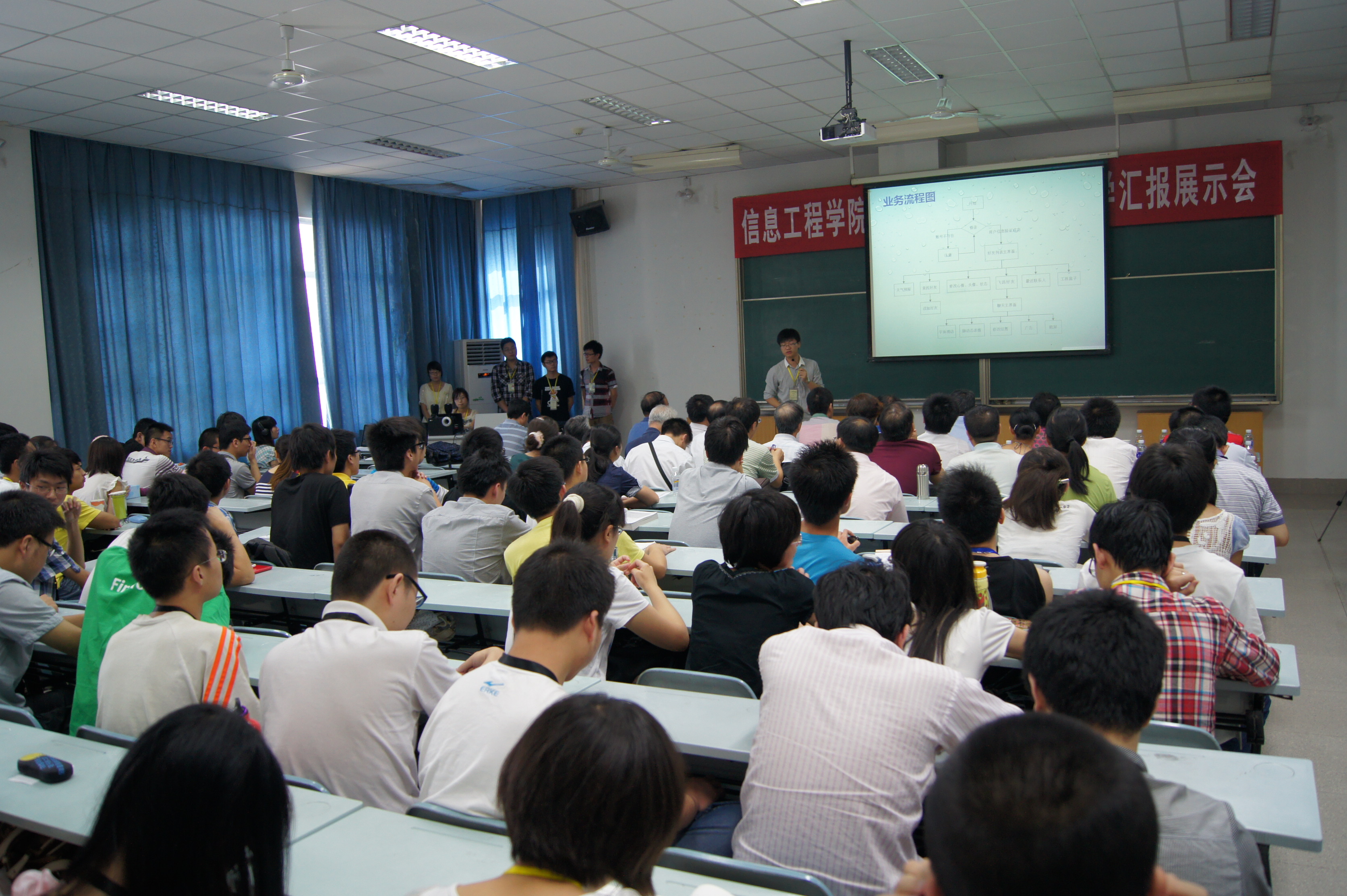 信息学院院企联合集中实践教学汇报展示会于7月1日在学院多媒体教室召开。常务副校长赵忠、教务处负责人出席会议。学院领导、院教学督导组、企业一线兼职实训指导教师、院教学委员会及学院配备实训指导教师参加了会议。会议分两个阶段进行,第一阶段为项目组实训成果汇报展示,第二阶段为座谈交流。
