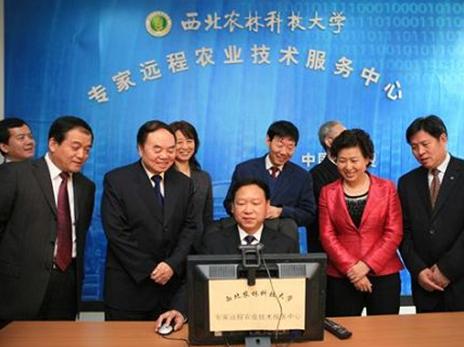 在校考察期间,周济部长一行参观了我校农业试验示范平台,听取信息工程学院院长何东健教授对我校自主研发的农业远程培训系统、农业专家远程视频咨询系统、农业远程可视化系统、气象农田数据远程采集系统以及农业技术培训网络课程的汇报。周济部长兴致勃勃地观看了专家远程农业技术服务系统运行状况,与正在为农民培训的白水苹果试验示范站首席专家赵政阳教授通话,并亲切问候正在培训的农民朋友。
