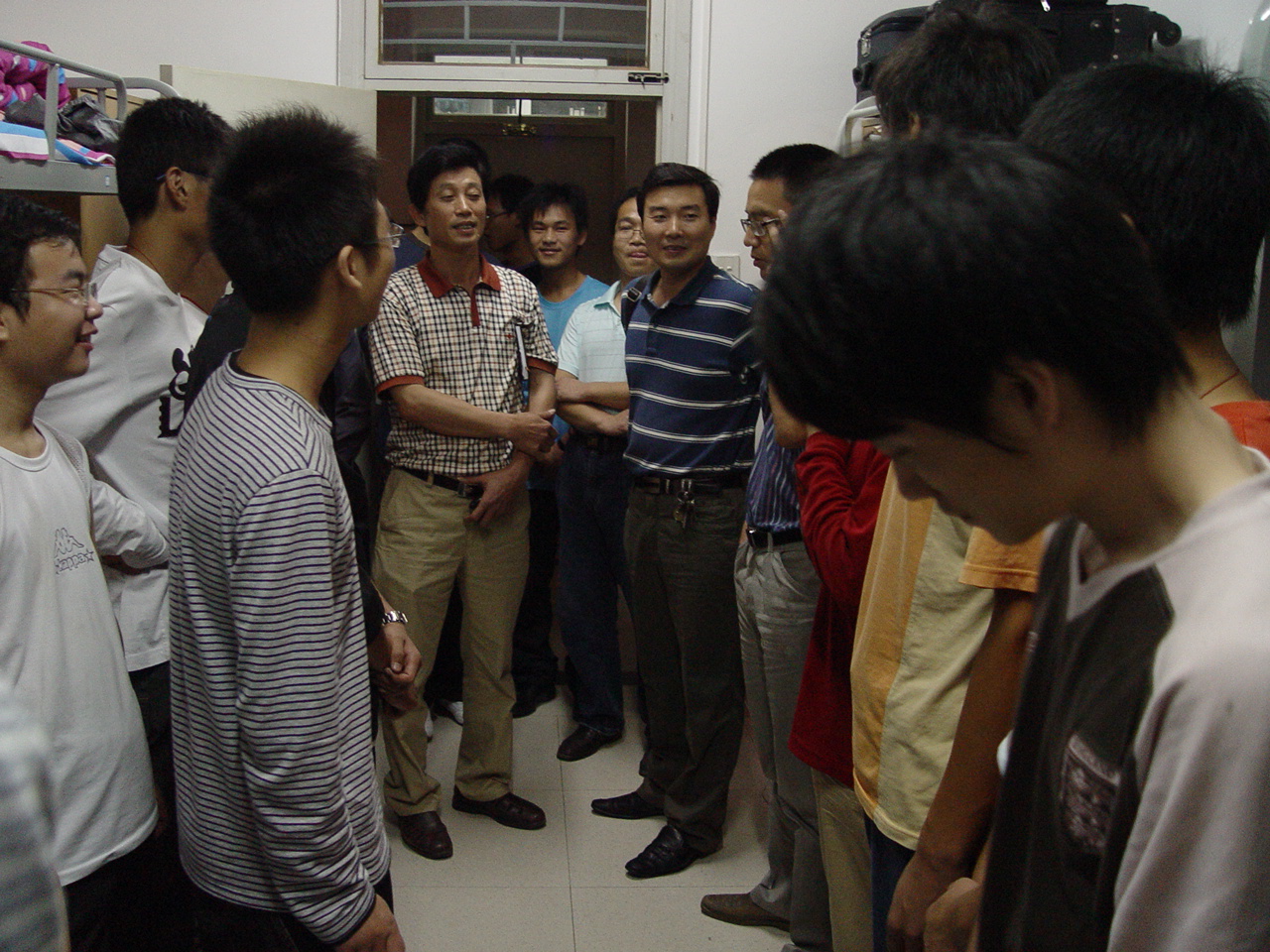 8月30日晚8点,学院党委书记樊世明,学院副院长韩宏、王木昌,党委副书记何卫军,全体辅导员以及新生班主任一起来到新生宿舍亲切看望2009级新生。