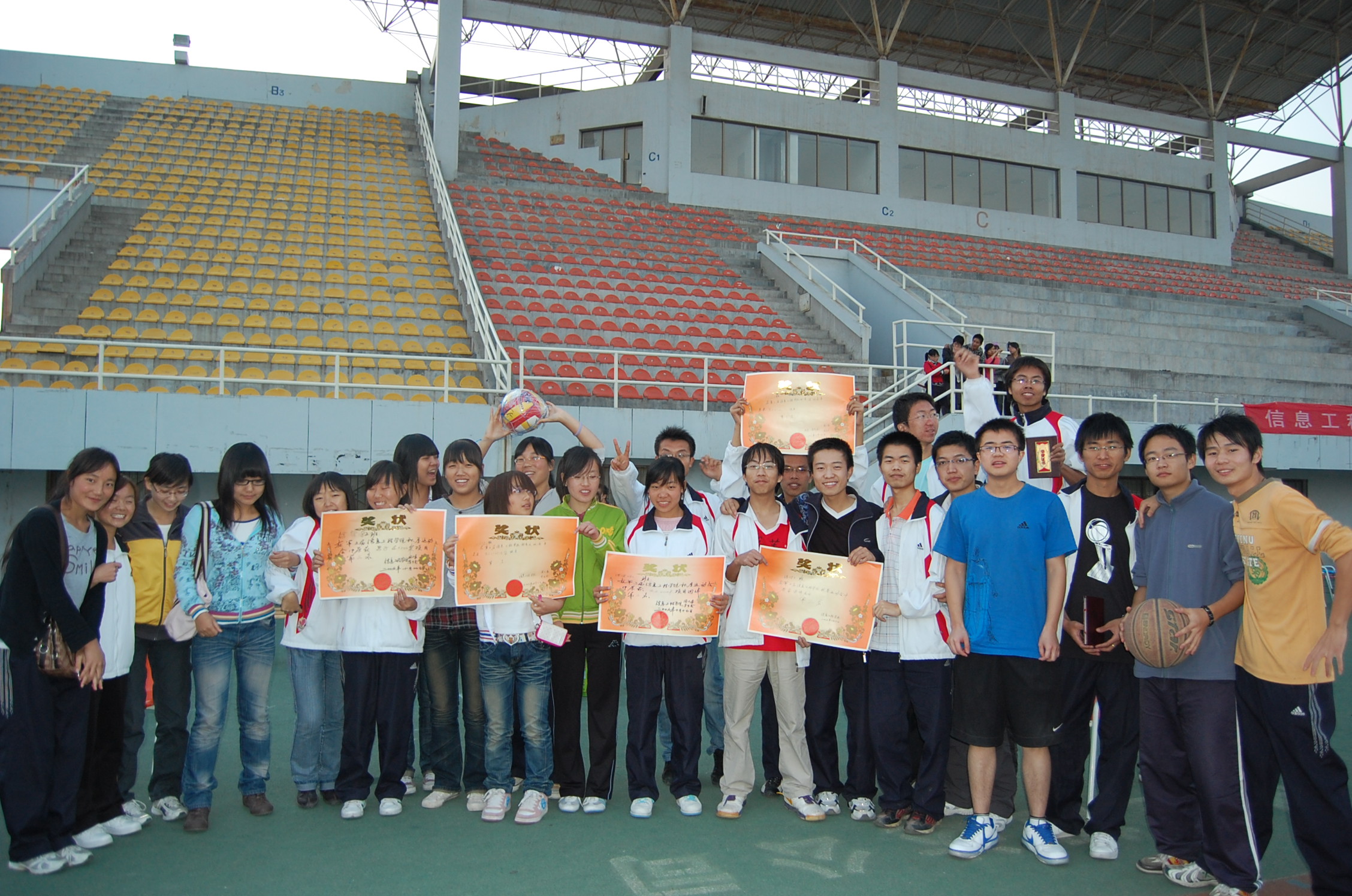 下午5点,运动会在5*60接力赛中落下帷幕。本届运动会上,运动员们取得了十分优异的成绩,计算机081班,信管083班和信管082班分别获得团体前三名,信管091班和软件093获得精神文明奖。