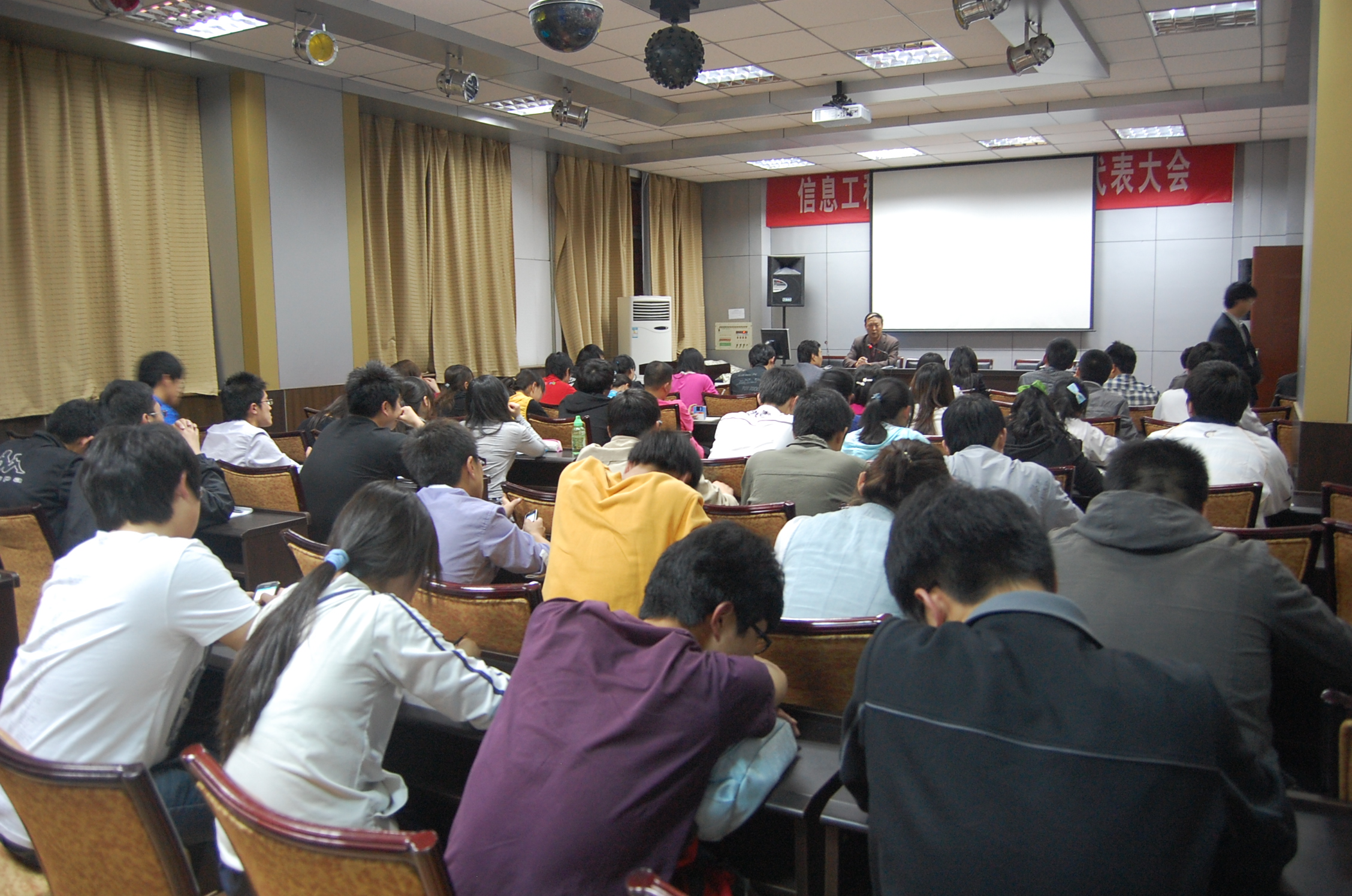为统筹安排有关校运动会的具体工作, 4月19日晚,学院在二层会议室召开校运动会工作协调会议。全体辅导员、各班班长和团支书以及学生会主要学生干部参加会议。党委书记樊世明,党委副书记何卫军出席会议并讲话。