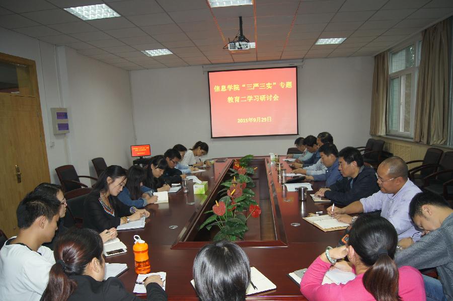 按照校党委部署和学院“三严三实”专题教育安排,9月29日下午,信息学院党委以“严以律己,严守党的政治纪律和政治规矩,自觉做政治上的‘明白人’”为主题,进行专题教育第二阶段第二次学习研讨。学院党委书记宋西德主持会议并做“强化学习, 内化行动, 自觉践行“三严三实” 争做政治上的明白人” 主旨发言。