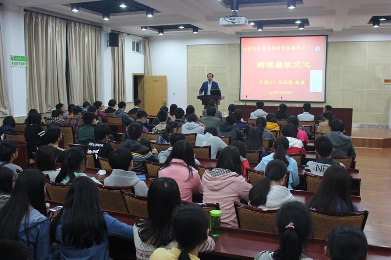 10月9日晚,信息学院副203教室里不时爆发出热烈的掌声,一百多个座位座无虚席。教室里,信息学院党委书记宋西德教授正在进行一场名为“解读廉政文化”的讲座。因为很多人站着,以至于各个办公室的凳子都被搬来“应急”。