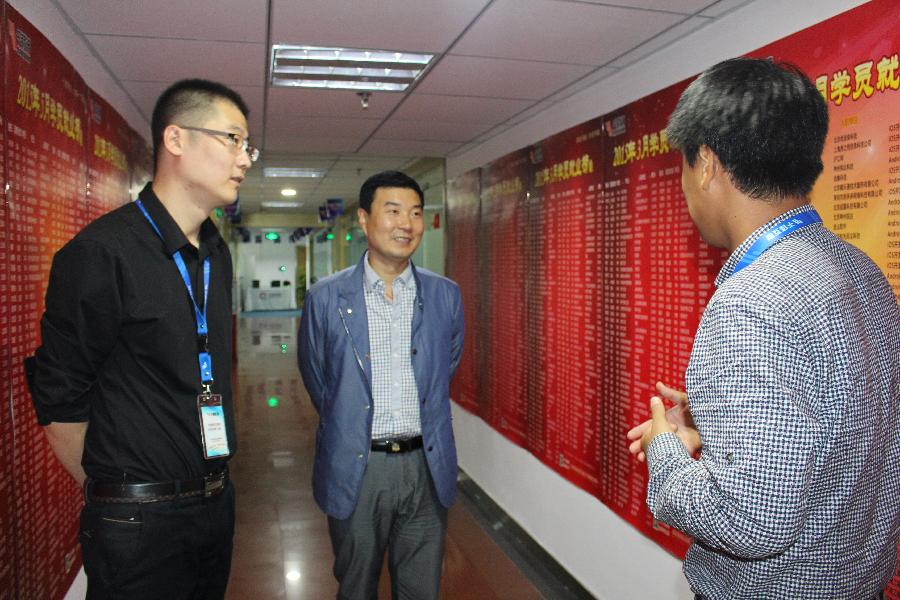 2015年9月25日,为进一步做好2016届毕业生就业工作,把握市场最新信息,拓展校企合作渠道、不断开拓和巩固毕业生就业市场,信息学院党委副书记何卫军及12级辅导员朱旭菲赴西安千锋互联科技有限公司开拓就业市场。