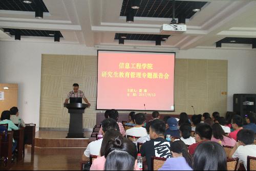 为加强研究生思想政治教育,促进学风建设,推进素质教育,确保研究生培养质量。9月13日下午,学院邀请校党委研工部副部长、研究生教育管理处处长聂海为全体研究生做了题为“将思想政治教育贯穿研究生培养全过程,促进思想政治教育与专业教育协调发展”的专题报告。全体在校研究生聆听了报告,报告由学院党委副书记翟立主持。