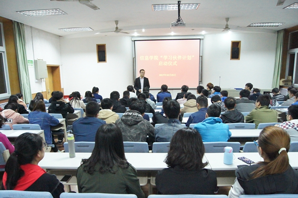 计划,落实,再计划,再落实。10月25日晚,信息学院“学习伙伴计划”正式启动。“计划”安排了一套可达成、可量化、易实施的阶段性学习计划和“脱困”时间表。计划中,品学兼优、乐于助人的学生成为引领者,学习困难、暂时落后的学生则是追赶者,院领导和老师担任监督者。三者共同参与,对照时间表要求,落实学习计划,阶段性计划完成后即制定新的学习计划,进入更深层次的学习阶段,通过“计划落实,再计划再落实”,稳扎稳打,步步为营,最终实现“脱困”总目标。