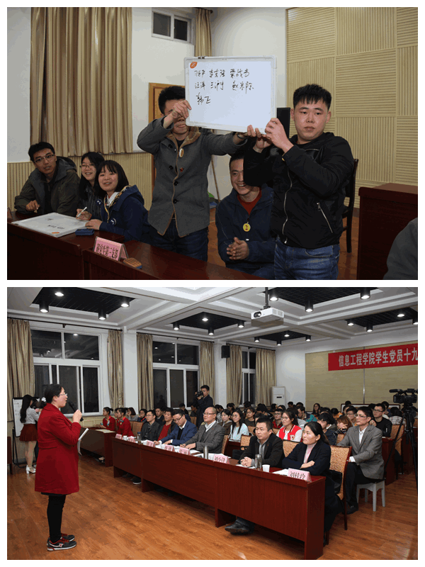 为深入学习领会党的十九大精神,提高学生党员的政治素养和综合素质,建设一支高质量的学生党员队伍,信息工程学院党委于11月5日晚举办十九大报告知识竞赛。学校十九大精神宣讲团成员、马克思主义学院张丽副教授,学院党委委员及全体学生党员参加活动。