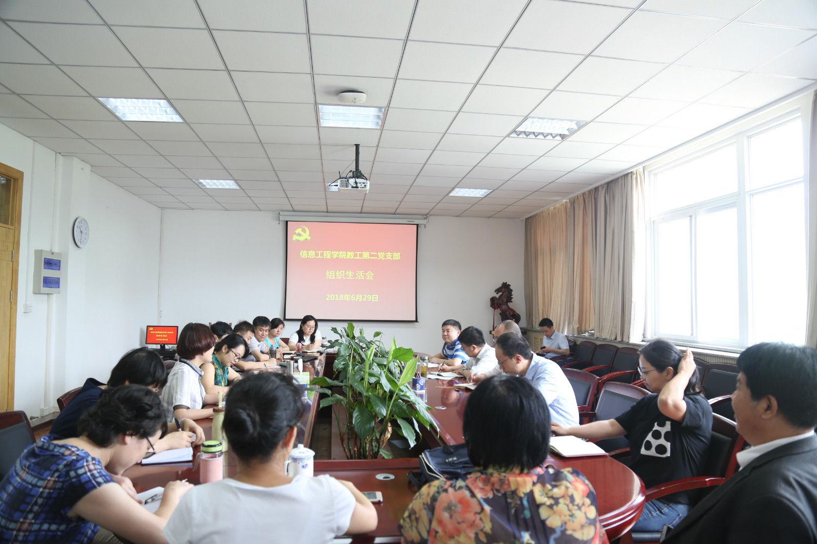 2018年6月29日上午,信息工程学院教工第二党支部召开组织生活会,专题学习讨论教育部陈宝生部长《在新时代全国高等学校本科教育工作会议》的讲话精神,校长吴普特以普通党员身份参会,学院党政负责人和基础教学部全体教师参加。