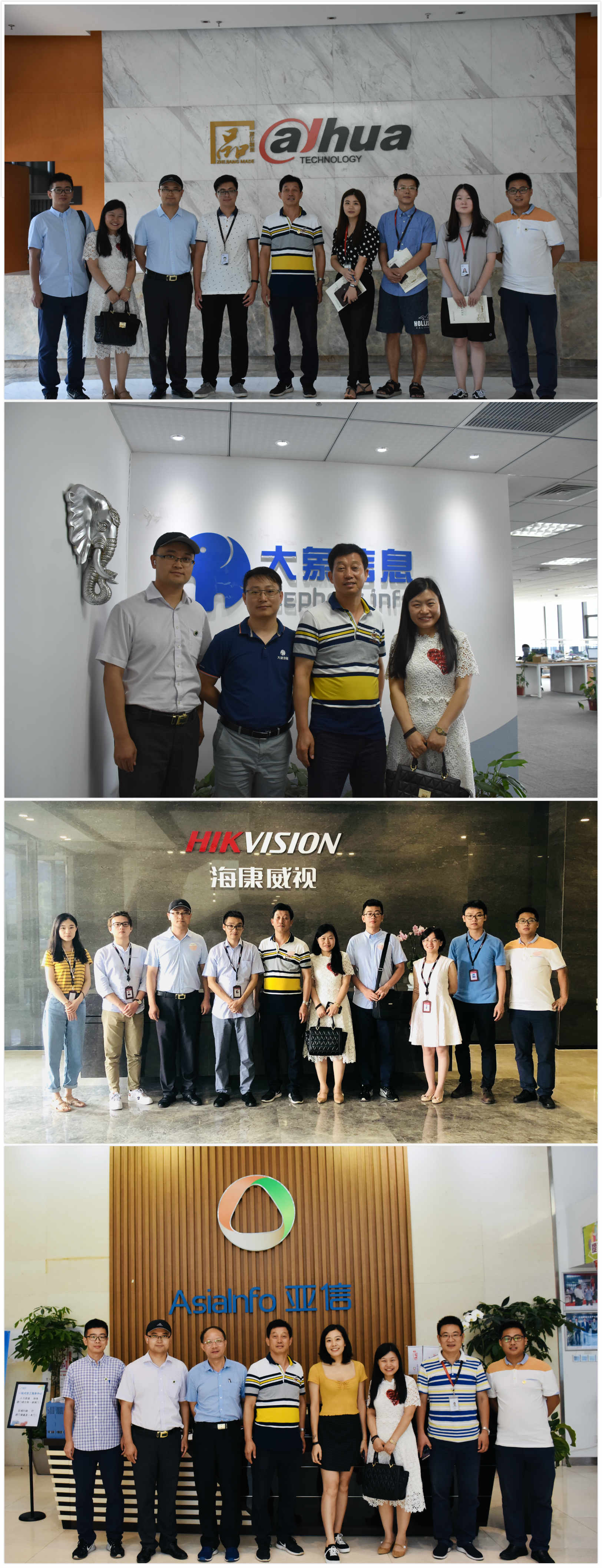 积极走访,扎实开拓就业市场。本次暑期开拓就业市场工作,工作人员不仅走访了阿里巴巴、海康威视、亚信科技、招银网络科技和大华技术等知名企业,同时也走进当地校友创业公司进行深入交流。交谈过程中,学院向企业介绍了人才培养、科学研究和社会服务等方面的优势与特色以及学院2019届毕业生相关信息,各公司相关负责人详细介绍了公司概况、主营业务、管理制度、招聘流程和人才需求。学院领导与各用人单位均对今后与学校加强合作联动、人才培养与输送等表达了积极的合作意向。