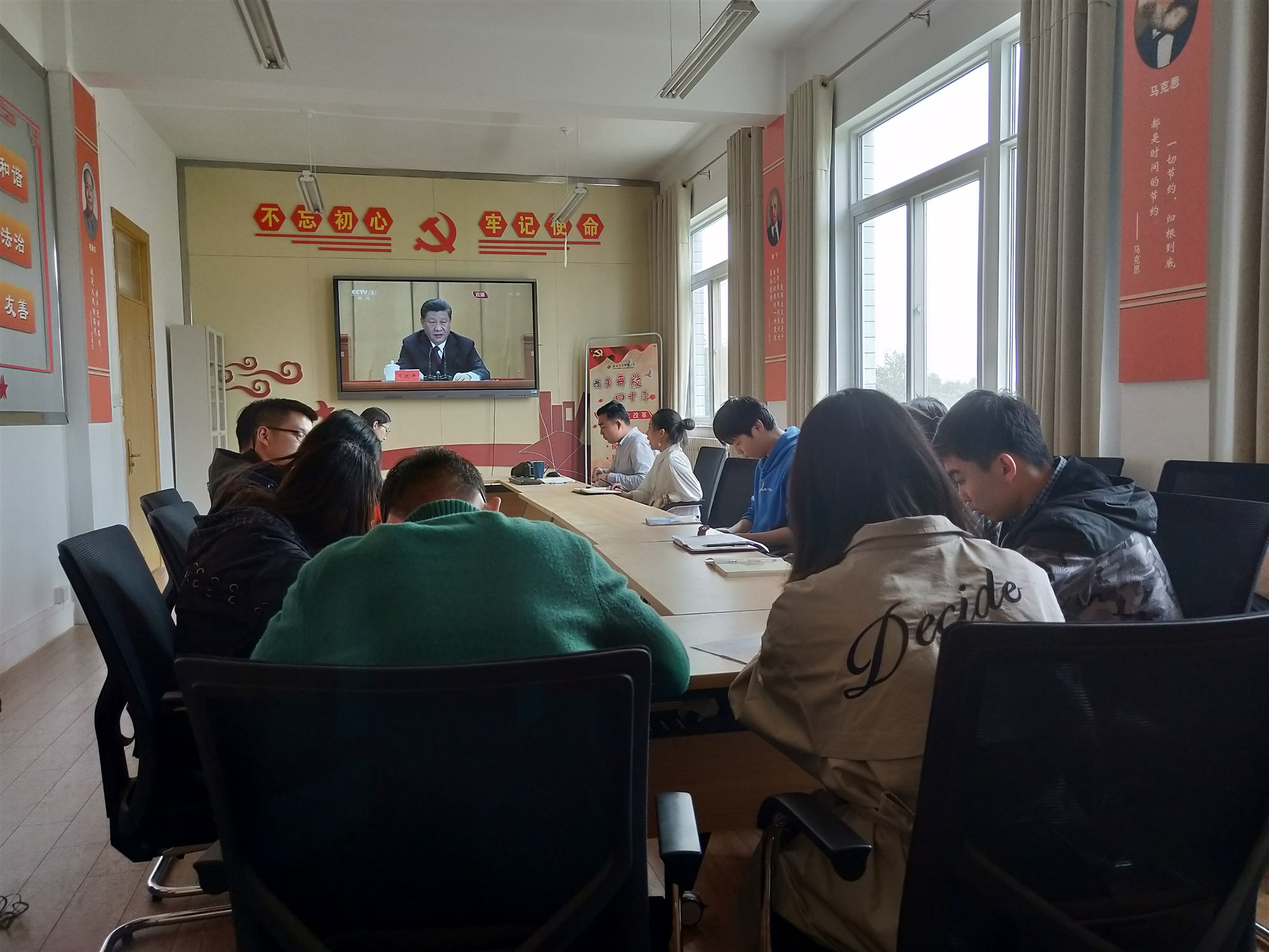4月30日上午,信息学院组织师生党员集体观看了纪念五四运动100周年大会直播,并围绕习近平总书记在大会上的重要讲话进行重点学习研讨。大家结合工作学习实际谈了对习近平总书记重要讲话中五四运动及五四精神历史地位、总书记对青年人的6点要求等内容的认识,纷纷表示要深入学习研究讲话精神,努力成为能够担负民族复兴大任的新时代中国青年。