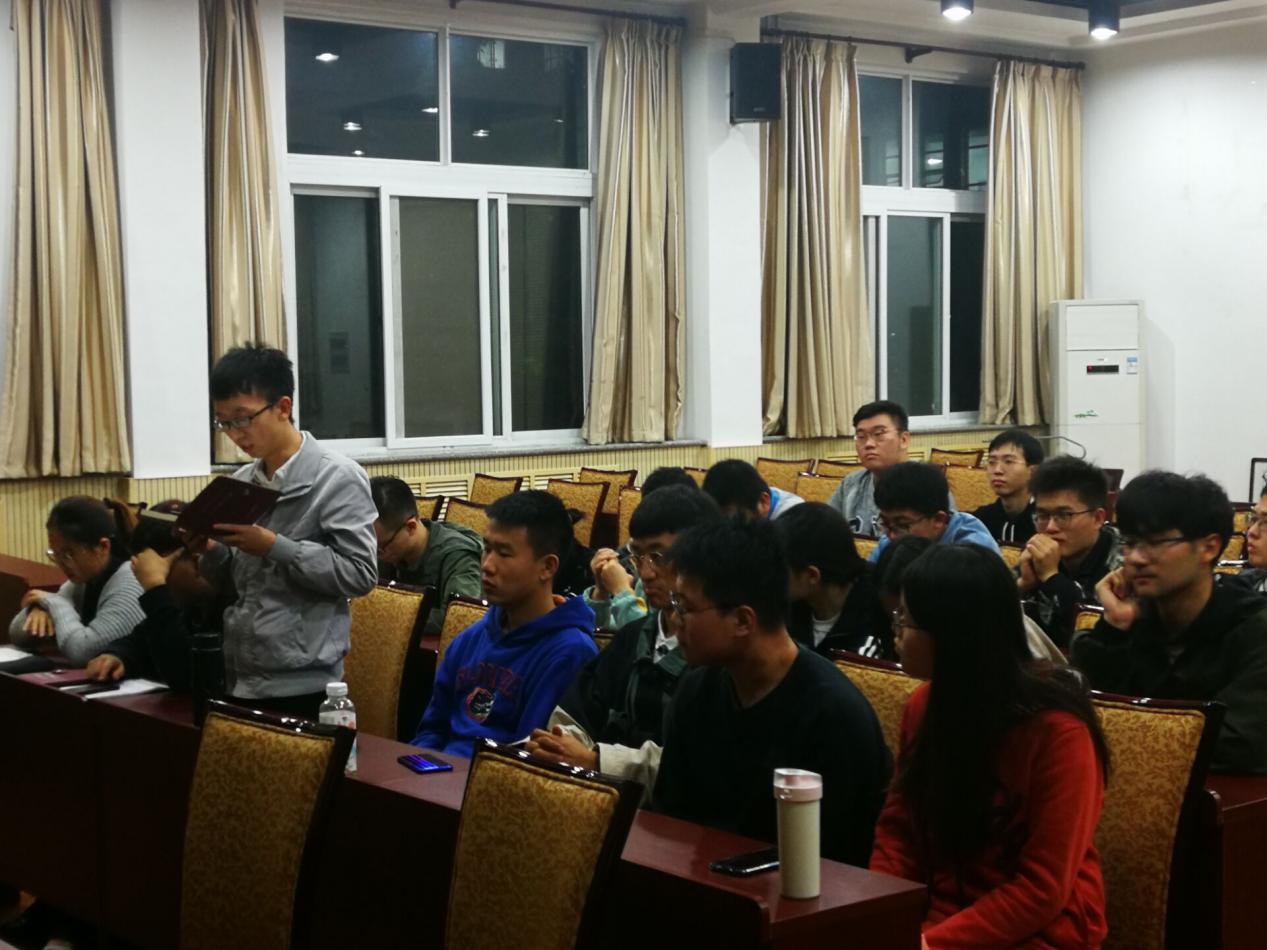 在品读论述摘编中坚定信念。10月11日,支部全体党员、积极分子集中学习了《习近平关于“不忘初心、牢记使命”论述摘编》,畅谈体会。高振宇同学谈到,不忘初心、牢记使命,首先要知道何谓“初心”、何谓“使命”。于家国天下而言,为中国人民谋幸福,为中华民族谋复兴,是青年人的初心和使命;于个人而言,实现梦想、爱重亲友,是青年人的初心和使命。要做到守初心、担使命,青年唯有增长才智、提高本领,才能实现梦想、实现自我价值,不负对自我的使命;才能帮助家人、反馈友谊,不负对亲友的使命;才能为中国人民谋幸福、为中华民族谋复兴,不负对民族的使命。