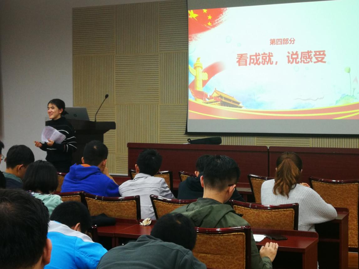 在组织观影中砥砺爱国情怀。国庆假期期间,支部组织党员同志观看电影《我和我的祖国》。七个故事带领大家重新回忆那一段段光荣而难忘的历史时刻,整部影片都洋溢着浓厚的爱国气息。观看影片后,党员之间进行了深入交谈、详尽探讨。学生党员梁会表示,爱国是一个永恒的话题,它不仅仅是言语上说说而已,更需要的是脚踏实地,从小事做起,一点一滴的,为祖国做出贡献,为社会的发展贡献力量!我们要在日后的工作和学习生活中会牢记“昨天”,珍惜“今天”,把握“今天”,创造“明天”,更加努力,为祖国的建设添砖加瓦。爱国的种子早已发芽,终会有一天长成参天大树!