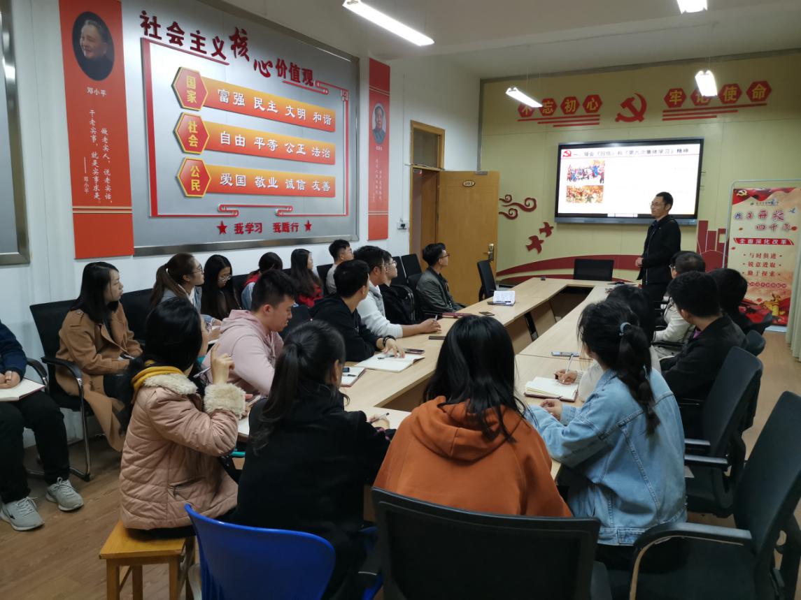 为了推进“不忘初心,牢记使命”主题教育深入开展,10月30日晚7点在学院副401会议室,学院党委委员、副院长胡少军同志为研究生第二、第三党支部全体党员同志上了一堂生动的党课。