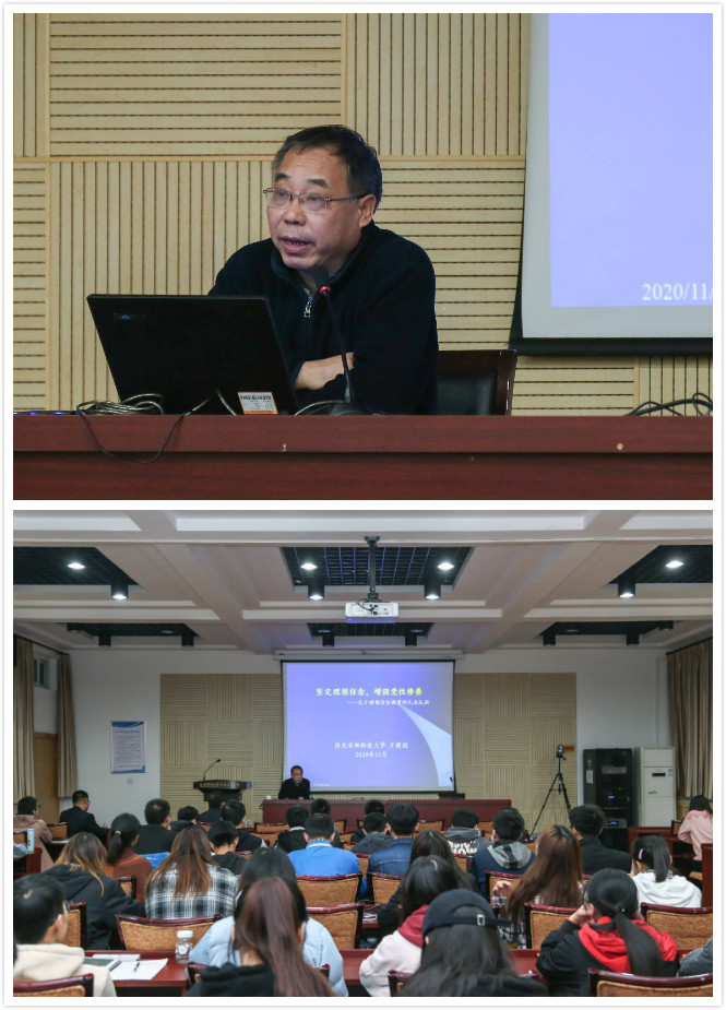 开班仪式后,马克思主义学院教授方建斌以《坚定理想信念,增强党性修养》为题,为学员带来开班第一讲。他用“蒋廷黻之问”和“习近平总书记谈政治定力”开篇,从“什么是理想信念”“中国人有无信仰”“坚定理想信念需要从党性教育入手”“如何加强理想信念教育”四个方面作了重点阐述和精彩讲解。最后他勉励同学们进一步加强政治理论学习,牢固树立“四个意识”,坚定“四个自信”,坚决做到“两个维护”。