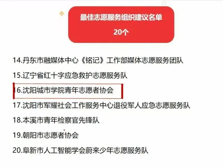 近日,中共辽宁省委社会工作部公示2025年度辽宁省志愿服务之星先进典型拟宣传选树名单。沈阳城市学院青年志愿者协会入选最佳志愿服务组织名单,该荣誉是由中共辽宁省委社会工作部选树表彰的全省志愿服务领域最高级别省级官方荣誉。