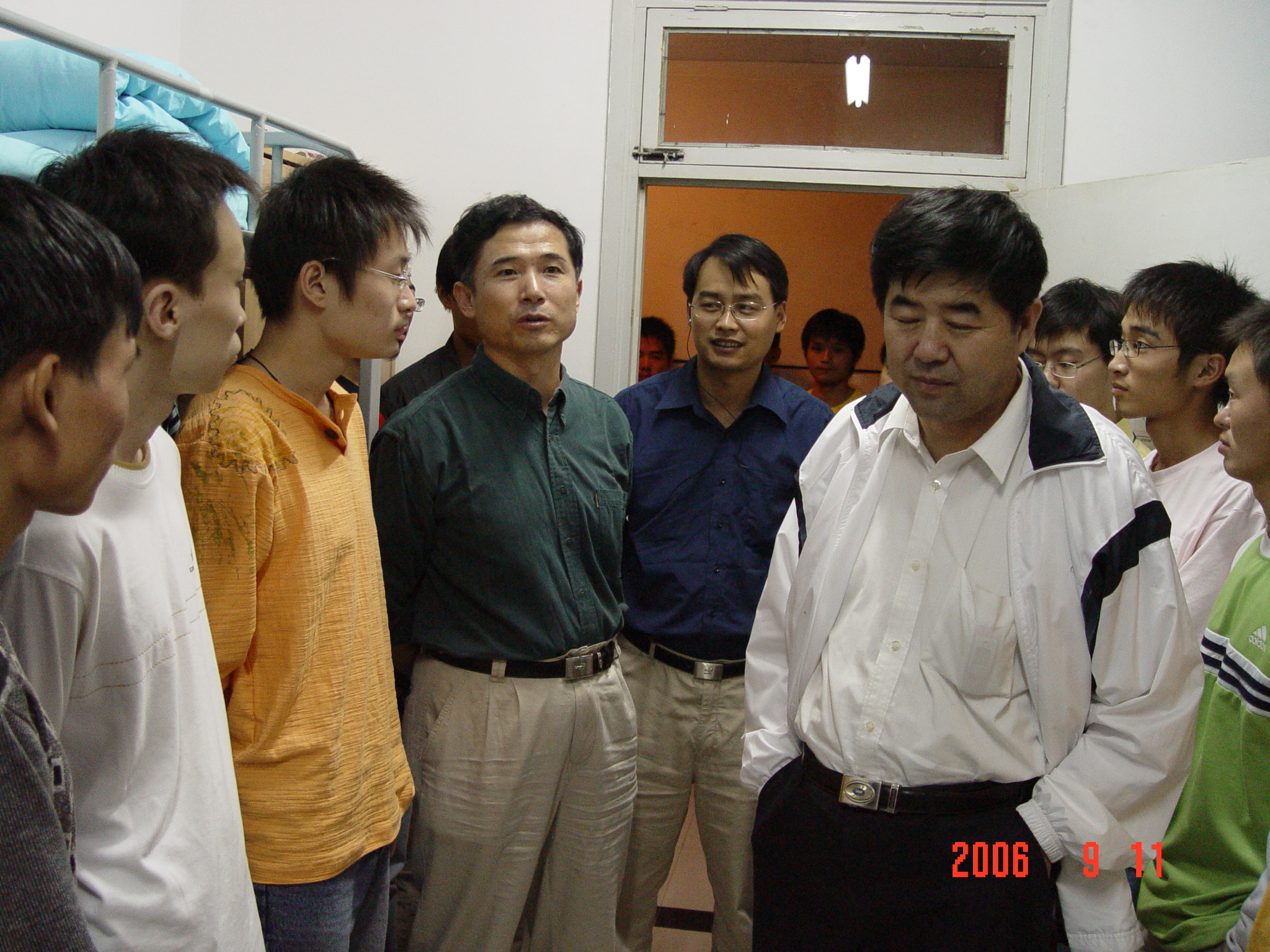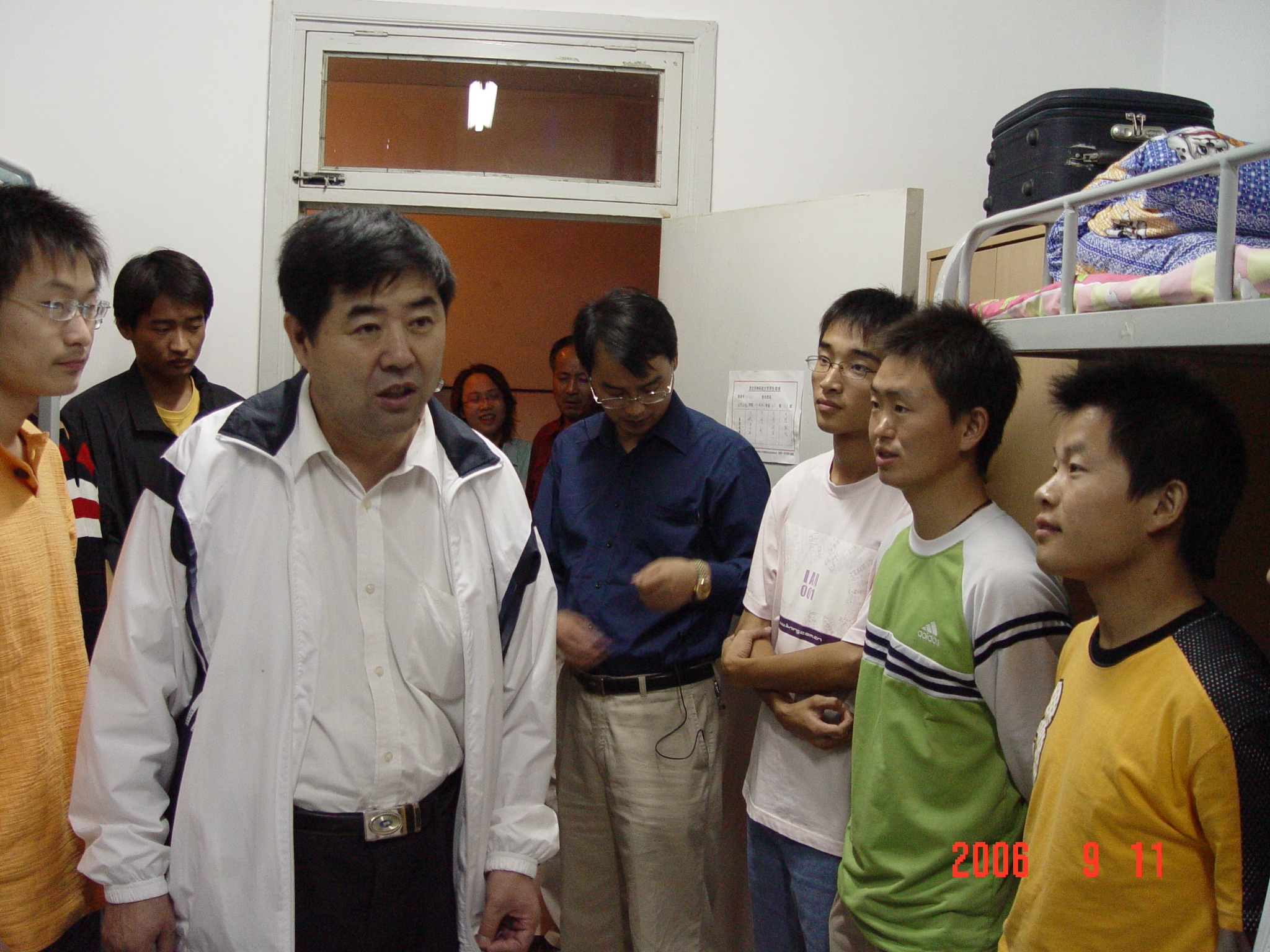 9月11日晚,校党委副书记、副校长王革教授、副校长侯曦教授在学生处等职能部门的陪同下到信息工程学院男生宿舍楼看望2006级新生。王革副书记和侯曦副校长分别发表了热情洋溢的讲话,并亲切的问候同学们的生活适应情况,校领导和蔼的态度、平实的询问、微笑的面孔给同学们留下了深刻的印象,许多同学说自己非常感动。