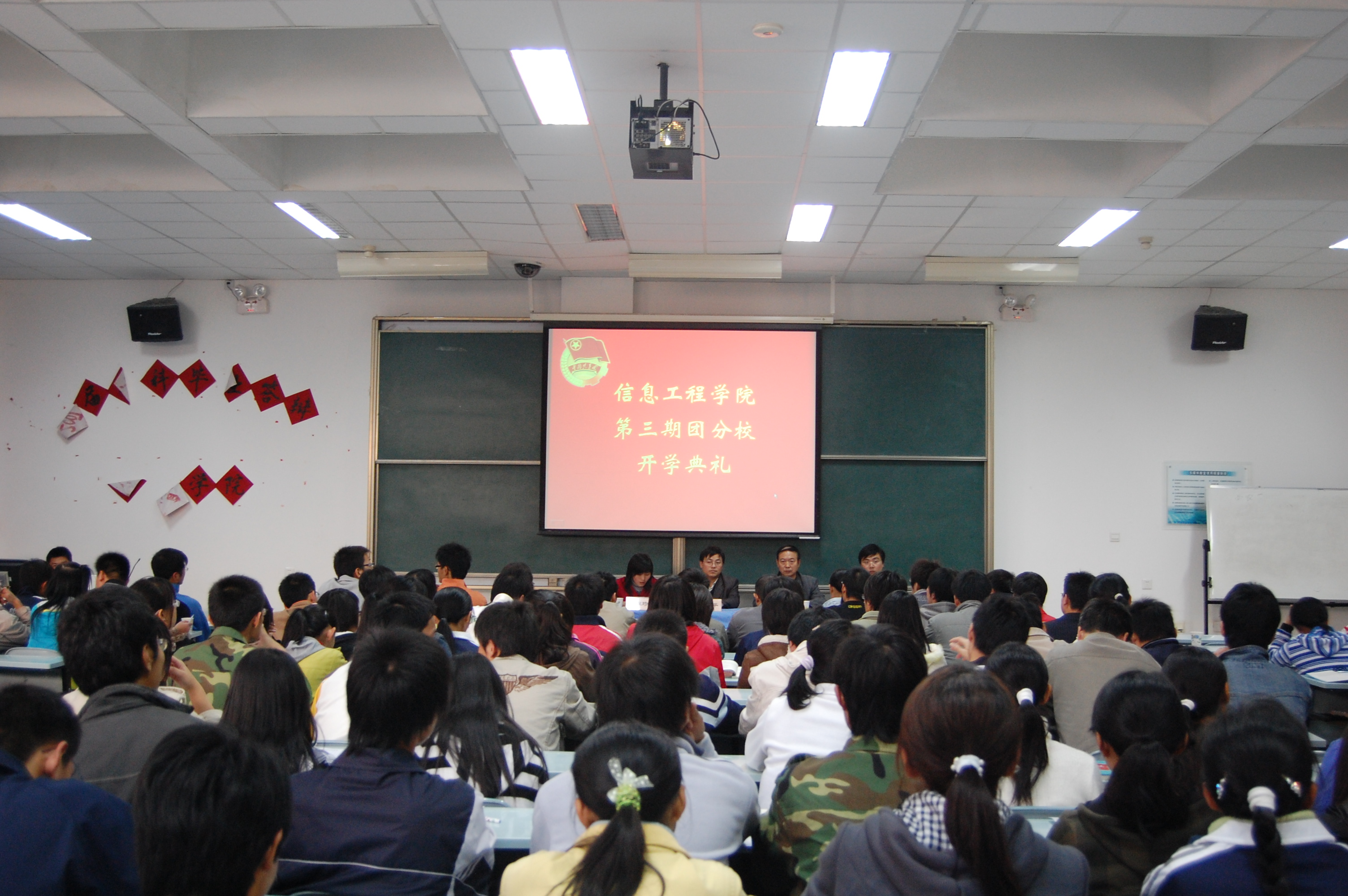 典礼仪式在激动人心的团歌声中拉开了序幕,校团委书记张小平老师发表了讲话,他对信息工程学院第三期团分校的开学表示热烈的祝贺,对团校在大学生团学干部培养中的重要作用作了强调,指出了团学干部在学校日常教育管理中的积极意义,希望参加团分校学习的同学能够珍惜学习机会,积极锻炼自己各方面的能力,不断提高自己的综合素质,进一步加强自己为同学服务的本领。学院团工委书记谷申杰老师介绍了第三期团分校的基本情况。接着赵立伟同学代表120余名团学干部发言,他感谢学院给他们这样好的学习机会,表示一定不辜负老师的期望,在培训中长知识、增才干,今后更好的为广大同学服务。