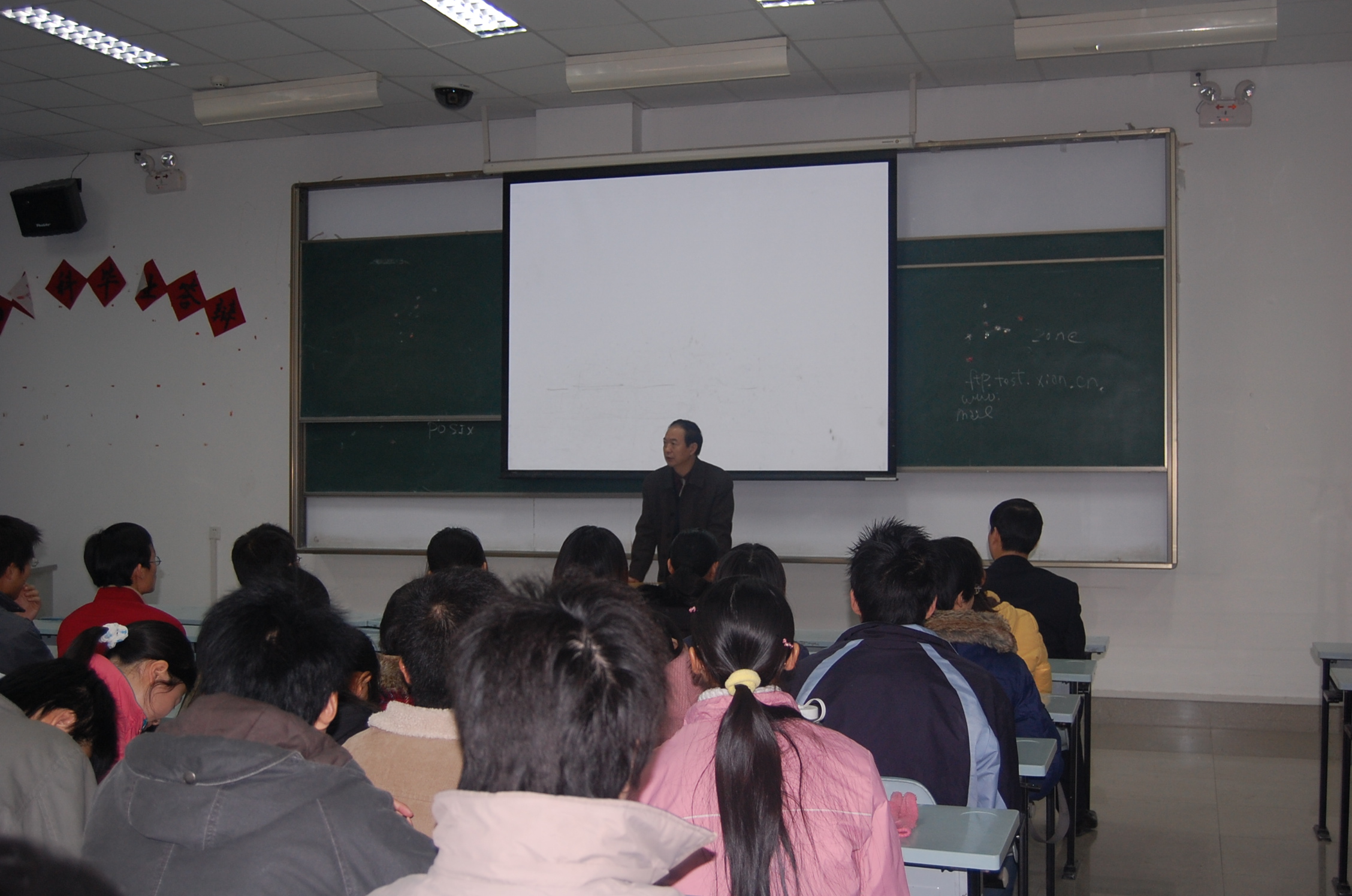 多年从事学生就业工作的刘桂玲老师结合自己出外开拓就业市场的经历向毕业生提了三点建议:一是要有良好的心态,以一颗平常心积极主动就业。二是给自己一个合适的定位,深刻剖析自己,明确自己的特长,兴趣爱好,性格等,找准适合自己的工作岗位。三是不断给自己充电,提高就业力。学院党委书记樊世明老师通报了学院2008届毕业生目前就业情况,分析了国家大专院校毕业生就业形势,并对毕业生提出了希望和要求:希望大家降低就业期望值,到西部就业,到祖国最需要的地方就业,在社会主义现代化建设的各行各业贡献自己的力量;希望大家利用寒假机会参加家乡的招聘会,力争早日找到自己满意的单位;希望大家寒假过后早点返校,按时参加我校和西安高校的大型双选会,抓住一切机会就业;希望考研的同学珍惜最后的复习时间,坚持下去,取得成功。