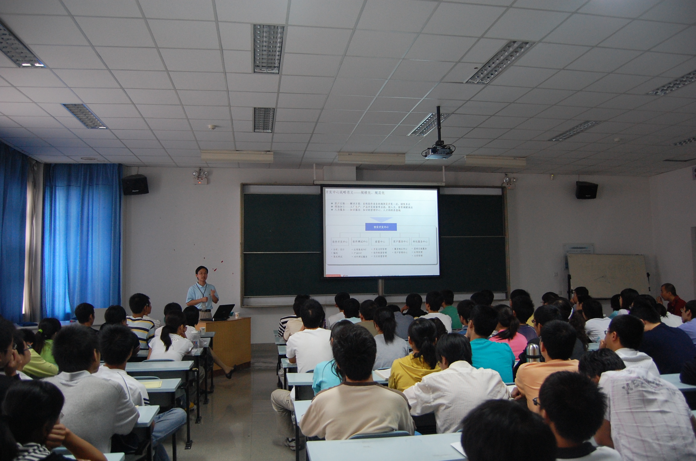 叶晓平总经理向大家介绍了公司的规模、新员工培训、岗位设置、职业发展以及工资待遇等,与会同学还就自己关心的问题进行了提问。会后,66名毕业生参加了公司的笔试。北京神州数码融信软件有限公司西安分公司现有员工800余人,我院累计有毕业生60余人,2008年3月该公司与我院签订建立就业实习基地协议,加强了学生培养和就业工作的合作。