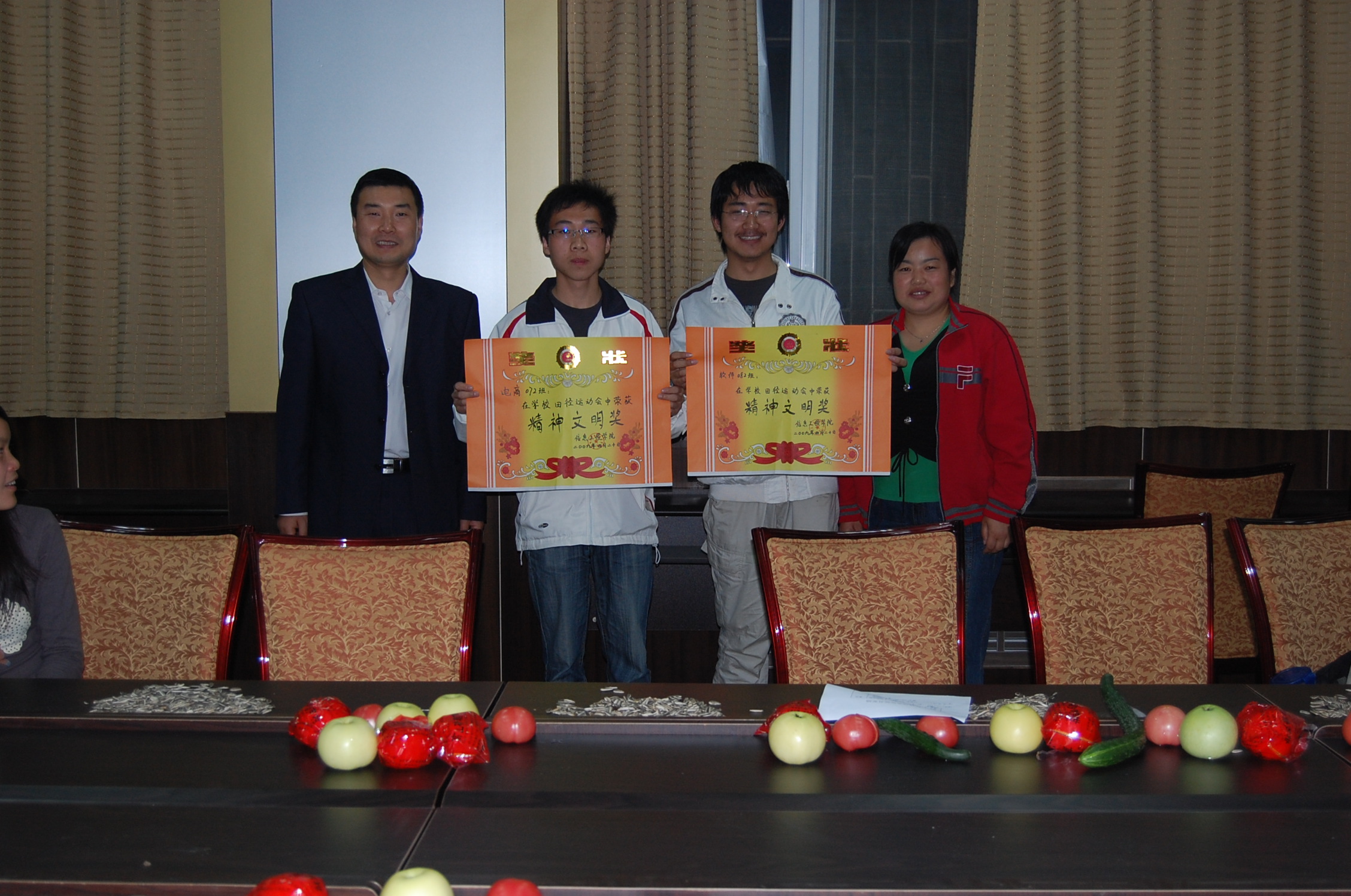 会上还对崔江涛、刘全杨、李丽宁等12名优秀运动员,贾欣、黄丽威两名新闻宣传先进个人,2007级电子商务2班、2008级软件2班两个精神文明班集体进行了表彰。