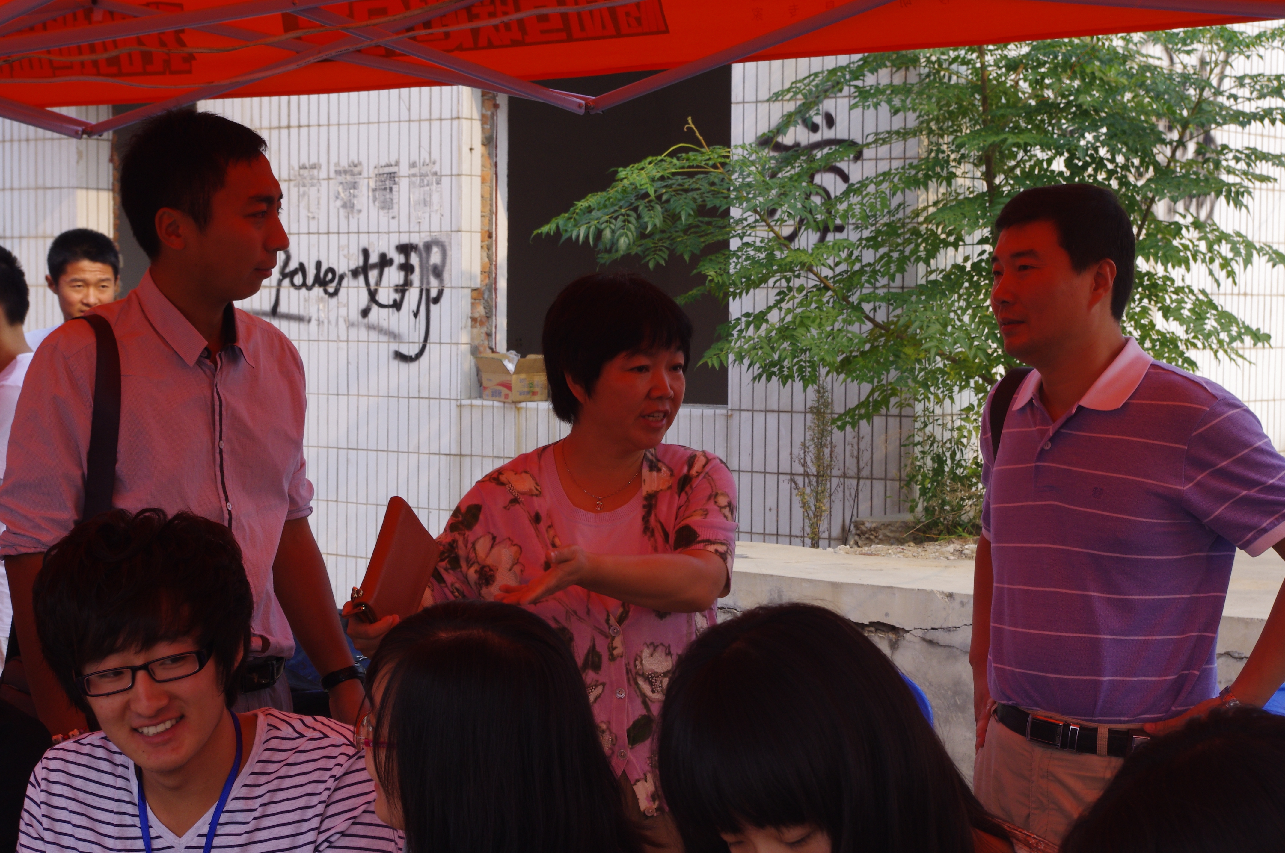 9点,院长李书琴、党委副书记何卫军等领导来到新生接待处指导工作。他们亲切地与迎新志愿者们交谈,肯定了同学们的工作。关切地询问新生及其家长,向他们介绍对我校我院的部分情况,给初来乍到的新生带来第一丝温暖。