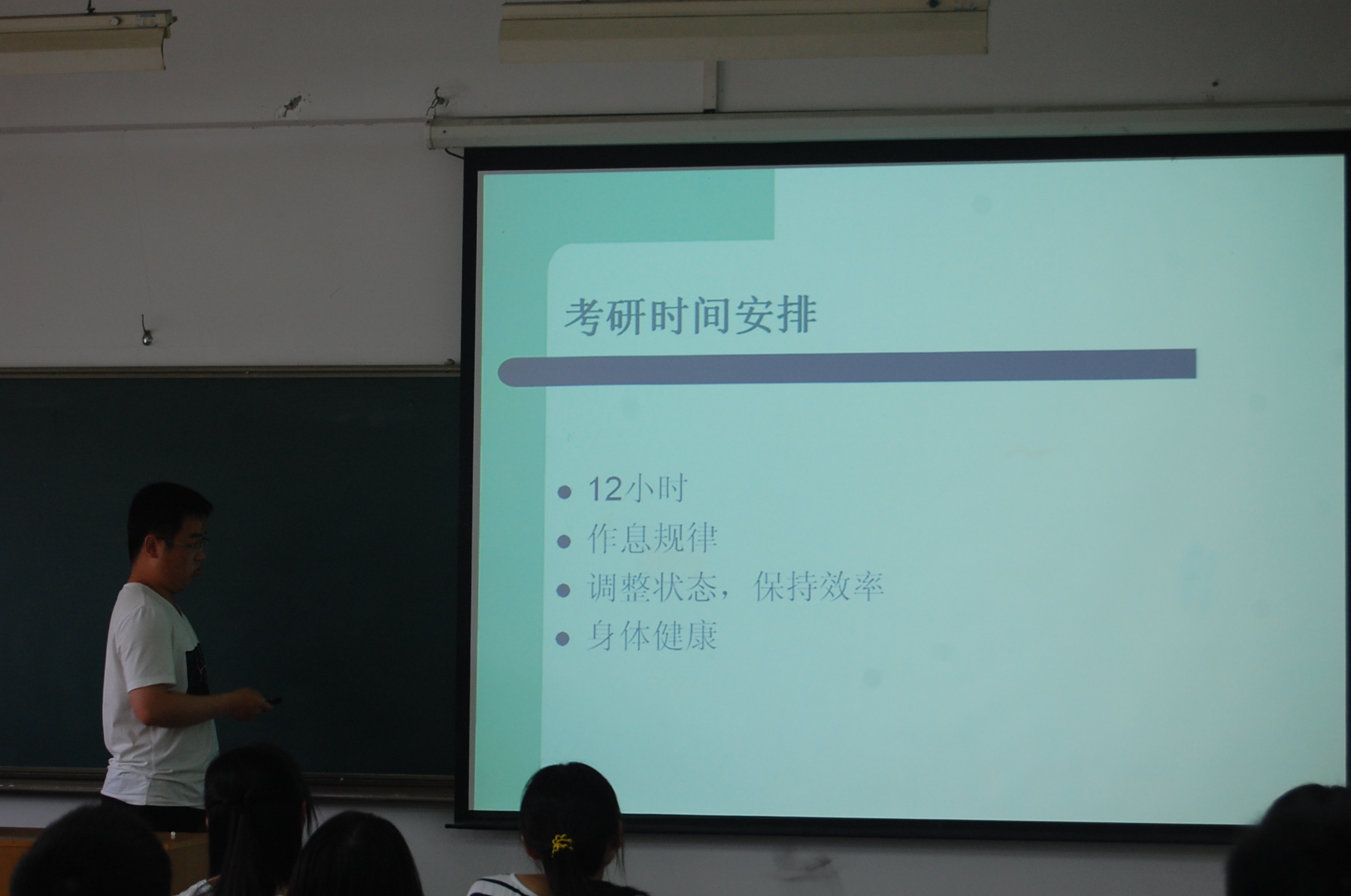 5月10日下午,信息学院在8115教室举行了考研经验交流会。副院长张阳主持并点评,进行汇报的有杨琳等六名大四学生。