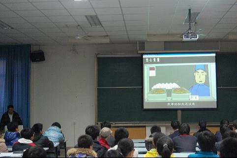经过激烈的角逐,本次大赛共产生一等奖一名,二等奖两名,三等奖三名。其中更是以信息工程学院的的作品《伤心食堂》为代表,作品通过诙谐幽默的方式,精湛的flash制作技巧形象展现了大学生活中的现实问题。 随后,张阳教授做了大赛点评,对本次大赛中的作品立意和技术手段给予了充分好评,并鼓励在座的大一新生积极参加以后的比赛,希望我校flash设计大赛一年更比一年好。